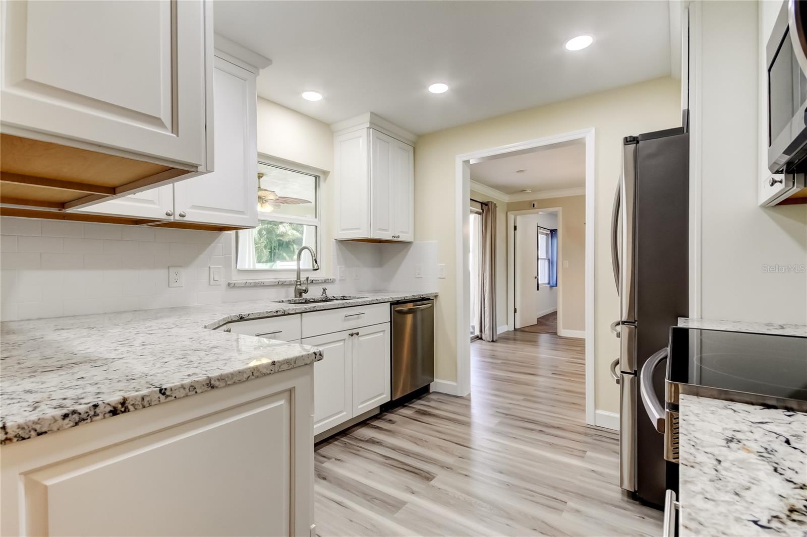 Welcome to your Clearwater oasis on Eden Court! This beautifully updated 4-bedroom, 2-bath pool home with 1,763 square feet and a 2-car garage is move-in ready and full of upgrades. The completely remodeled kitchen features wood cabinetry, granite countertops, and all-new stainless steel appliances. The primary bathroom has been tastefully renovated, and the second (pool) bath features a new vanity and toilet. Additional updates include a new electrical panel (2021), most windows new with impact-resistant windows (2021), water heater (2019), new ceiling fans, crown molding, and luxury vinyl plank flooring in many rooms. The split floor plan offers ideal privacy for families or guests. Enjoy your morning coffee or a good book in the enclosed sunroom, or step outside to a spacious backyard retreat with a saltwater pool, vinyl fencing, and a handy storage shed. Fresh exterior paint gives this home great curb appeal. All of this, just minutes from Clearwater’s beaches, shopping, and dining. Don’t miss your chance—schedule your private showing today!