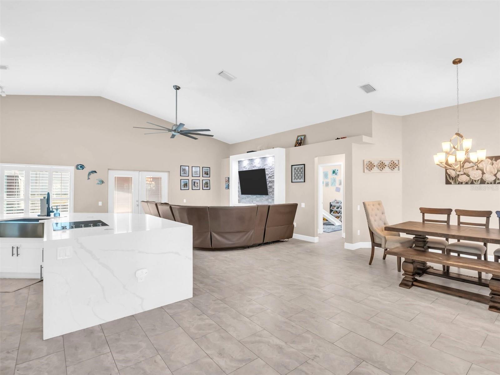 - Interior Features: Cathedral Ceiling(s), High Ceilings, Living Room/Dining Room Combo, Open Floorplan, Other, Primary Bedroom Main Floor, Solid Surface Counters, Split Bedroom, Thermostat, Walk-In Closet(s)