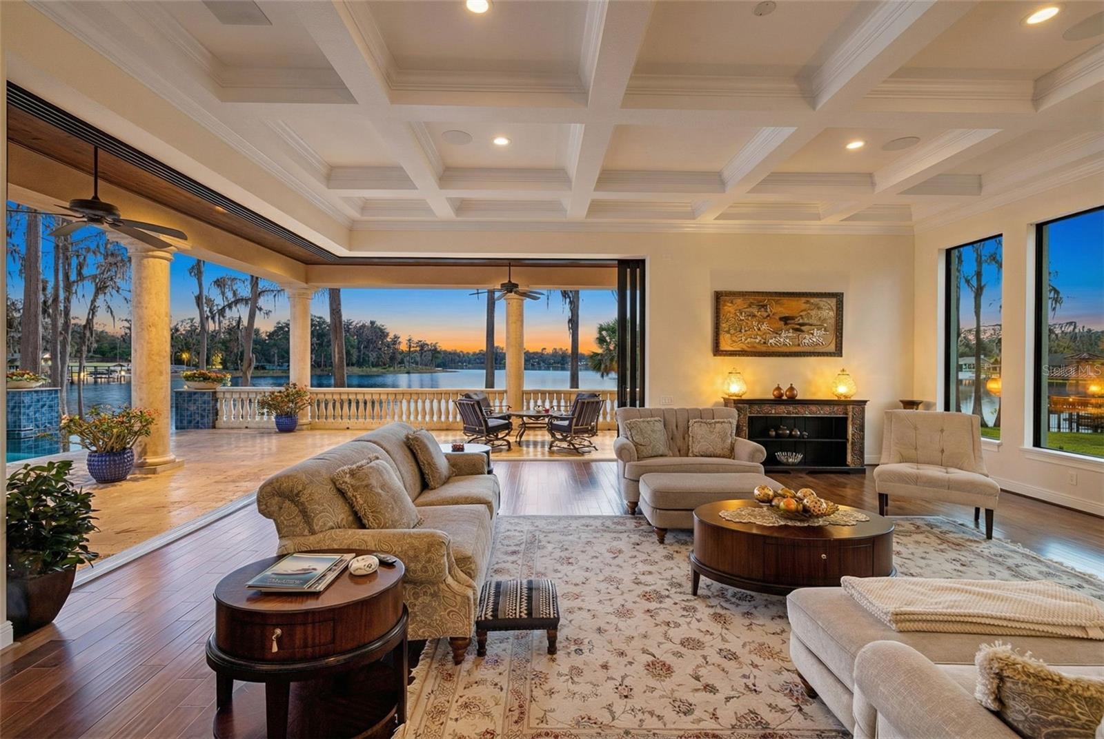 Introducing 17124 Crawley Road, a gated Mediterranean lakefront estate where refined architecture meets resort-caliber living. Set on nearly six acres along the shores of Rainbow Lake, this custom Arthur Rutenberg residence showcases a signature custom floor plan not available to the public, offering six bedrooms, seven full baths, two half baths, and four garage spaces within a double gated private retreat designed for both grand entertaining and everyday luxury. Built in 2017 and encompassing approximately 10,545 total square feet including a detached guest cabana (596 Sq. Ft), the home opens with a dramatic double-door entry and soaring foyer crowned by a sweeping dual staircase. Expansive windows frame tranquil water views and fill the interiors with natural light. The formal living room impresses with 24-foot ceilings, a gas fireplace, and panoramic pool-to-lake vistas, while the family room’s pocketing sliders create seamless indoor-outdoor living. At the heart of the home, the designer kitchen blends statement style with function, featuring a Cianitus granite island, Cambria Menai quartz surfaces, gas range, wall oven, pot filler, designer lighting, and an elegant butler’s pantry with wine refrigeration. An oversized formal dining room offers a stunning setting for gatherings both intimate and grand. The main-level primary suite is a private sanctuary complete with fireplace, dual custom walk-in closets, and a spa-inspired bath with freestanding soaking tub and oversized shower. Additional ensuite bedrooms, a fitness room, and a soaring study provide flexibility, while upstairs offers oversized guest suites, a sunken game room, bar, and lakefront balcony with pocket sliders elevating the entertaining experience. Designed by Ryan Hughes Design, the outdoor environment rivals a private resort with a heated saltwater pool and spa, covered terrace, full outdoor kitchen, fire pit, and lush landscaping. Paver pathways lead to a private dock installed in 2021, offering direct lake access for boating, sunset cruises, or fishing. A separate one bedroom, one bathroom guest cabana provides ideal accommodations for visitors or multigenerational living. Additional highlights include two two-car garages, EV charging station, dual laundry rooms, custom closets throughout, hurricane-rated windows and sliders (with one shuttered area), surround sound, fruit trees, and intricate crown and tray ceilings. Located in Odessa, one of Tampa Bay’s most coveted enclaves known for estate homesites, natural beauty, and privacy, this property offers a rare blend of lakefront living with convenient access to top schools, dining, shopping, major highways, and Tampa International Airport.