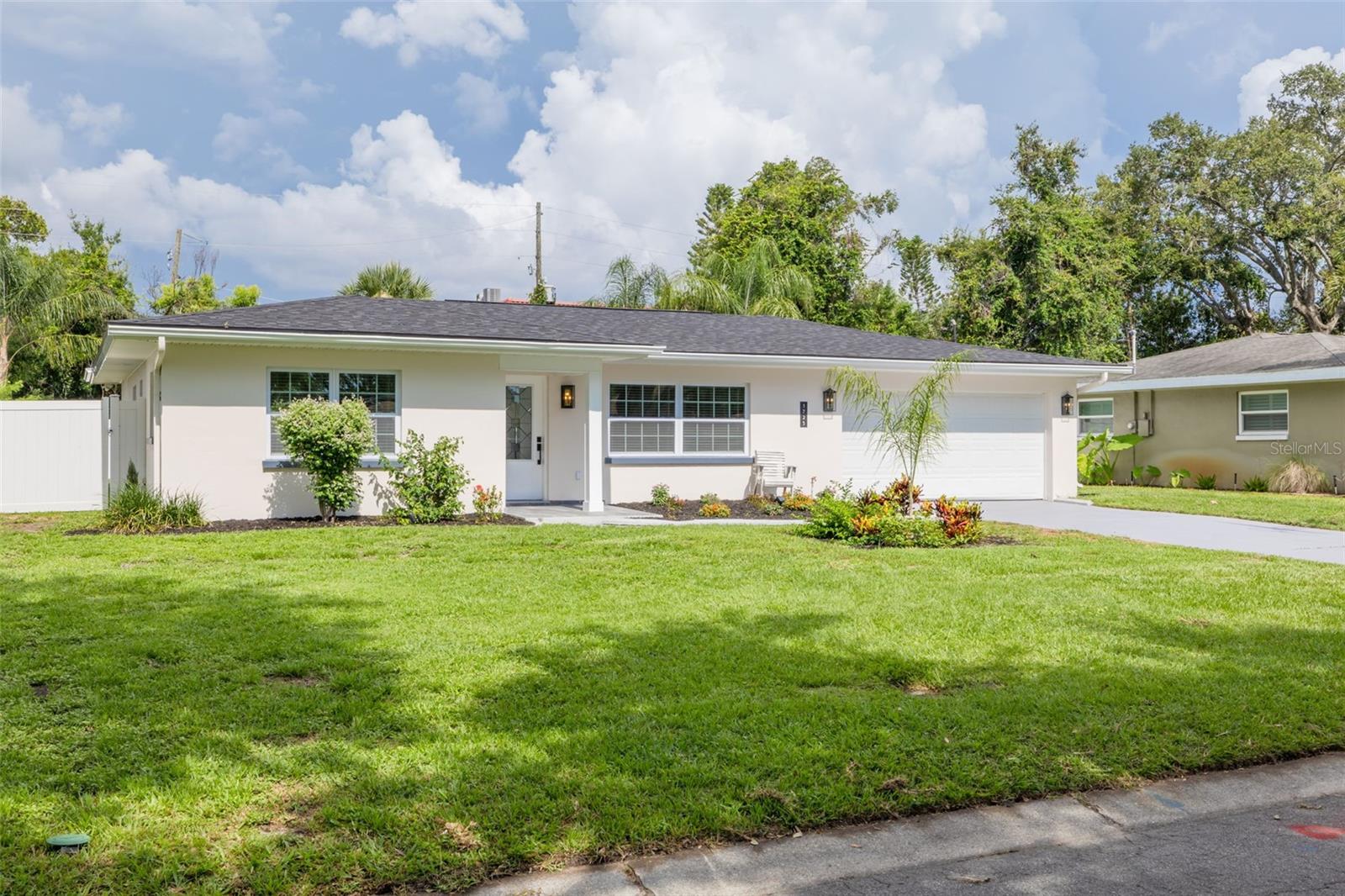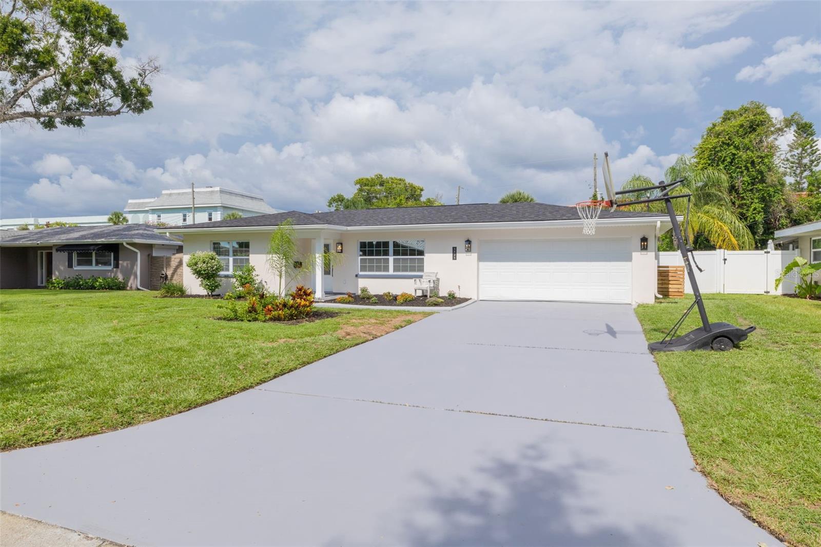 One or more photo(s) has been virtually staged. ABSOLUTELY GORGEOUS METICULOUSLY RENOVATED 4 BEDROOM/ 2 BATH/ 2CG, RESIDENCE, PACKED WITH LUXURIES. Experience the epitome of coastal, modern living in the highly sought after, charming, exclusive neighborhood of Belleair. This exceptional property features a welcoming, modern, open floor plan concept that seamlessly connects a large Living room- Family room-Dining room-Kitchen combo, finished with a new, waterproof, contemporary, luxury vinyl plank Flooring. The newly renovated kitchen is spectacular, spacious and well lit with an abundance of quartz countertops and massive 4'X2' Italian porcelain tiles backsplash, all new soft-close, shaker hardwood cabinets with brand new Samsung appliances and kitchen water filer system. The generous primary suite is beautifully designed, with large walk-in closet, boasting a stylish en-suite bath with a chic wall-glass shower and double sinks. Both bathrooms showcase top-tier finishes and accessories. Every detail has been considered. The brand new three dimensional shingle roof just being installed, all-new two panel interior and impact reresistant exterior door, new LED lighting accessories, and ceiling fans, new interior knock-down texture, new PVC fence, sod and landscaping, and the list goes on.... Everything else is newer including HVAC system, newer hurricane-rated garage door, double-pane windows and electrical panel, 3 yrs old water heater. Laundry room is coming with brand new Samsung washer and dryer. A glass, impact resistant sliding door leading you to a tiled lanai on a large fenced backyard, adorned with fresh sod and landscaping. It is a great place where you can enjoy the ocean breeze, refresh yourself, just relax or entertain all your desired gatherings. Kids or pets have ample space to get their energy out in the fully fenced backyard. Plenty of parking for vehicles & all the company you'll be entertaining too!
