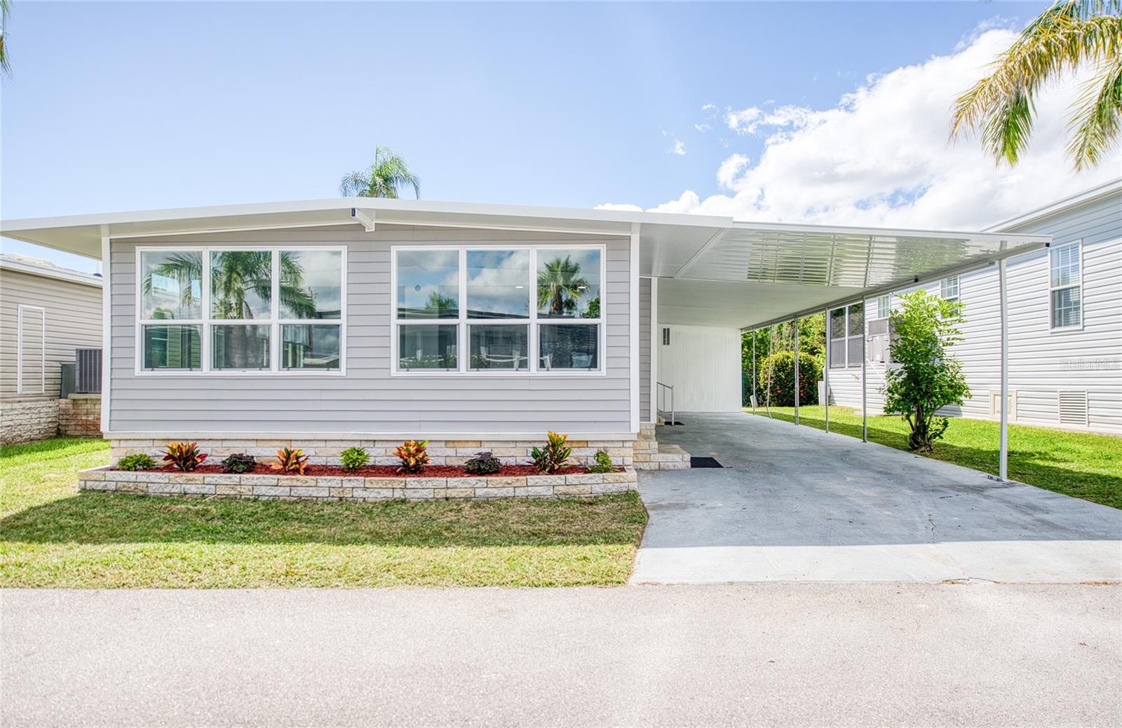 ESCAPE TO FLORIDA! Welcome to this newly remodeled two bedroom, two bath home in this spectacular waterfront community. This home has been remolded and has a redesigned floor plan. Brand new split AC system heat and cool. Two bedrooms with head units living area in kitchen with head unit all new exterior siding, new 3-in panel roof on front room is insulated. Removed all interior panel walls cardboard ceiling re-insulated the walls in the ceiling installed drywall throughout. Rewired electrical outlets and lights added LED lighting, re-plumbed bathrooms and kitchen with opener, added a shower to the second bathroom redid flooring with new waterproof vinyl complete new kitchen cabinets and countertops. All brand new windows most of them in packed only the front area is not impact but those are double pane This premier Pinellas County waterfront manufactured home community offers the unique benefit of property ownership, not renting, within an active age 55 and over retirement setting. Enjoy leisurely afternoons by the heated pool and Jacuzzi, stay active with friendly games on the shuffleboard courts, and participate in varied scheduled activities at the clubhouse. With two fishing piers right on Tampa Bay, waterfront enjoyment is always at your fingertips. Benefit from a low monthly maintenance fee of only $360, which conveniently covers lawn care, trash removal, water, and sewer services. Bay Aristocrat Village is ideally located just minutes from world-famous Clearwater Beach, upscale shopping malls, diverse restaurants, major hospitals, and two international airports. Please note that only one cat per home is allowed, and no dogs are permitted. Contact the community office regarding (ESA) pets. This is your chance to embrace the coveted Florida waterfront lifestyle. Schedule your private showing today to experience the Bay Aristocrat Village lifestyle firsthand and envision yourself living the warm, beautiful Florida waterfront dream!"