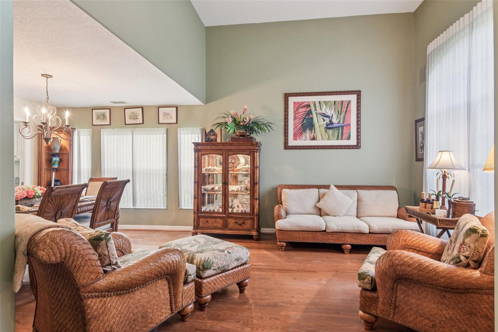 - Interior Features: Ceiling Fans(s), High Ceilings, Living Room/Dining Room Combo, Solid Surface Counters, Split Bedroom, Vaulted Ceiling(s), Walk-In Closet(s), Window Treatments