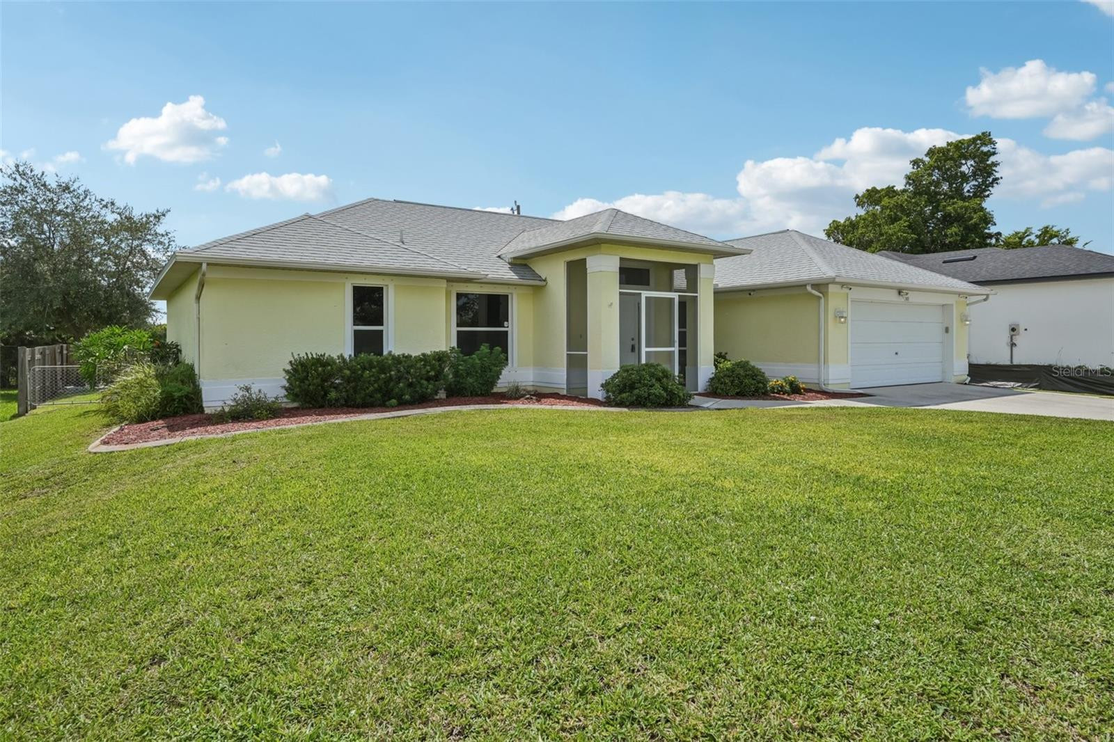 Welcome to your Cape Coral retreat! This beautifully maintained 2004-built home is perfectly situated in a quiet, fast-growing neighborhood and offers the ideal blend of style, comfort, and modern upgrades and making it truly move-in ready. Step inside to a bright and open great room with vaulted ceilings and imported 20-inch Italian tile flooring, creating a spacious, inviting atmosphere for relaxing or entertaining. The modern kitchen is a true highlight, featuring brand-new quartz countertops, a stainless steel refrigerator, stove, oven/range, dishwasher, and microwave, all complemented by matching finishes carried through to both bathrooms for a seamless, upscale look. This home has been thoughtfully updated with valuable features for your peace of mind: New Roof (2023) New Water Heater (2022, under warranty) New Backyard Fence New A/C Capacitor (June 2024) Reolink Security NVR System with 3 motion-activated security lights