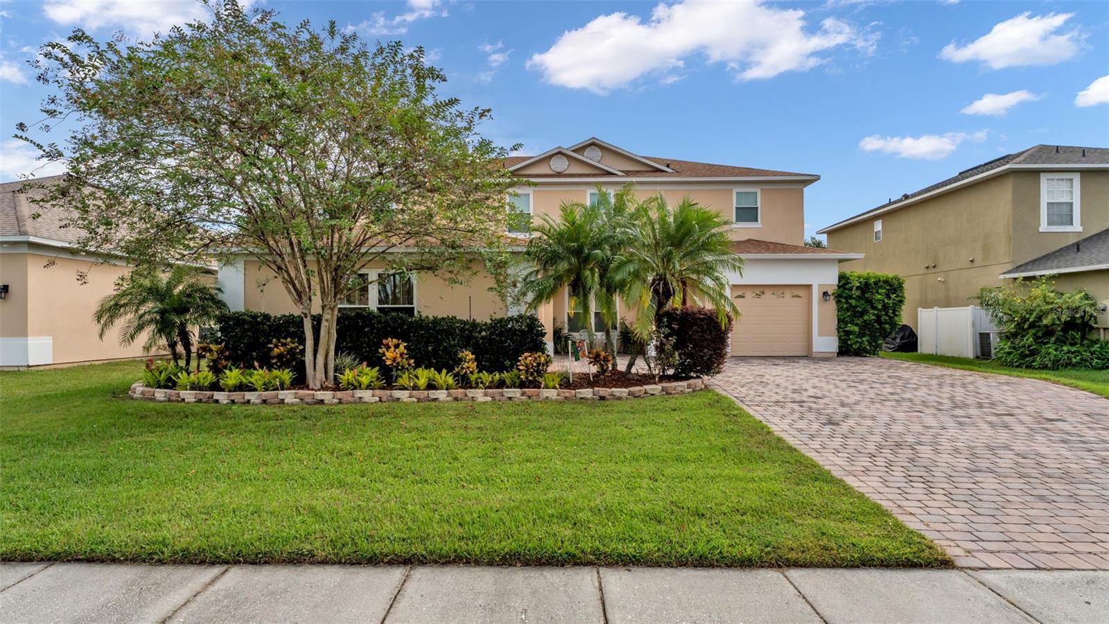 Welcome to this modern and fully furnished five-bedroom, three-and-a-half-bathroom luxury residence, offering the perfect blend of comfort, style, and functionality. From the moment you arrive, the pavered driveway, split three-car garage, gorgeous, landscaped yard, and stately two-story façade set the tone for the sophistication that awaits inside. Step through the front door to find a beautifully designed interior with large-format tile flooring, soaring ceilings, and a thoughtful layout ideal for both entertaining and everyday living. The home features separate formal living and dining rooms, providing refined spaces for hosting, while the open-concept kitchen and family room create a warm and inviting atmosphere for casual gatherings. The gourmet kitchen is a true centerpiece, showcasing granite countertops, a two-tiered breakfast bar, stainless steel appliances, pendant lighting, and a spacious walk-in pantry—perfect for the culinary enthusiast. With a double-primary suite design, the home offers exceptional flexibility. The downstairs suite is ideal for guests or multigenerational living, while the upstairs primary retreat provides a private haven alongside three additional bedrooms, all large in size, and a versatile loft/bonus area—perfect for a media room, playroom, or home office. The laundry room is spacious and fully loaded with cabinetry, a utility sink, and a fantastic tile wall behind the appliances. Enjoy Florida living at its finest on the screened-in lanai with ceiling fans, where you can relax and unwind in comfort and privacy. Immaculately maintained, the roof was replaced in 2023, recently replaced carpeting, the upstairs A/C unit was replaced in 2023, and new windows. Every detail of this home has been thoughtfully curated to provide a move-in-ready experience with timeless appeal. Luxurious, spacious, and impeccably maintained—this home is truly ready to welcome you.