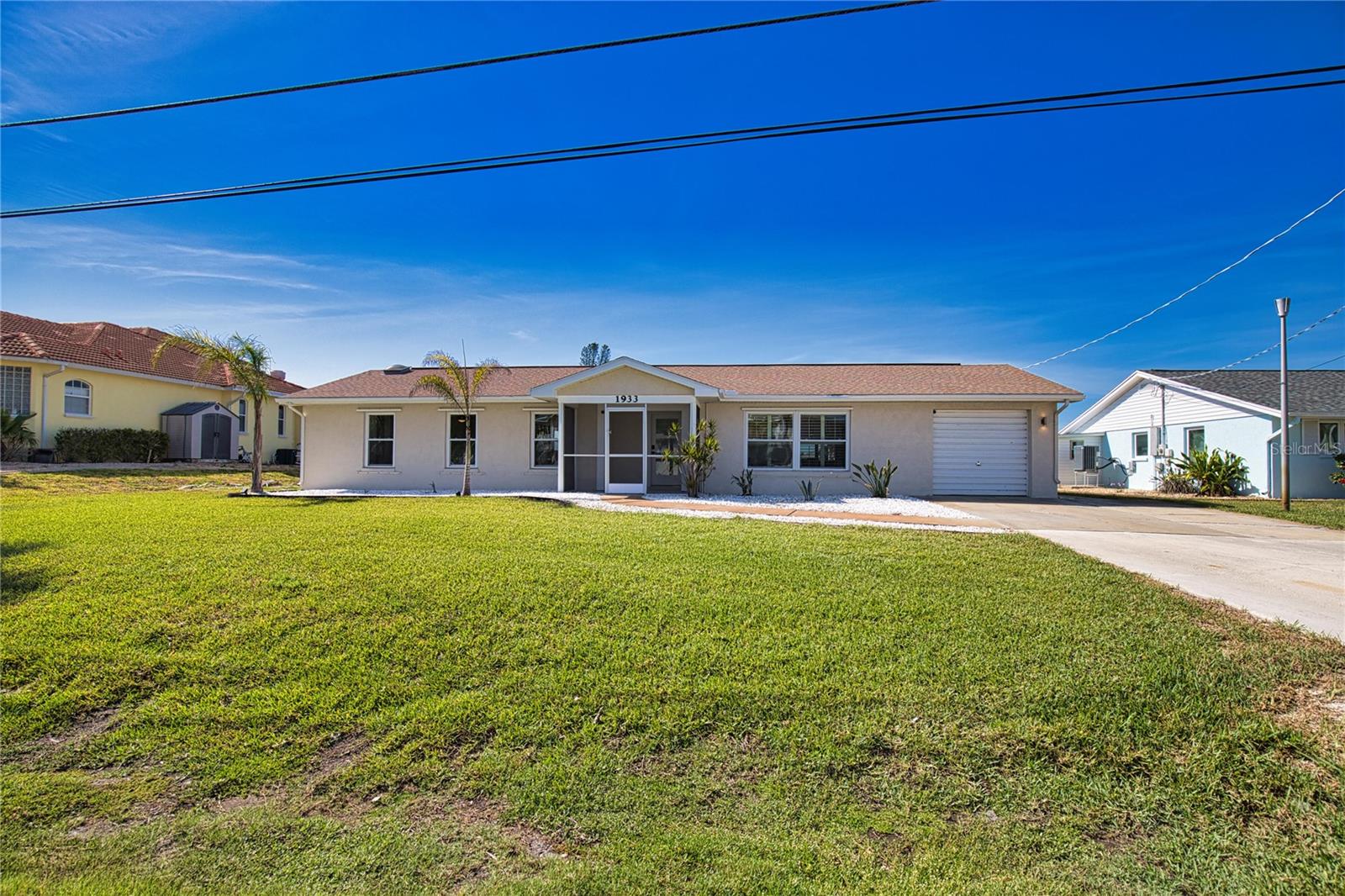 The property includes both a boat lift and a jet ski lift, with ample space to maneuver in the canal. The well-landscaped lawn features lush plants and a sprinkler system to keep everything green. Concrete walls and central AC ensure you stay cool all summer long.