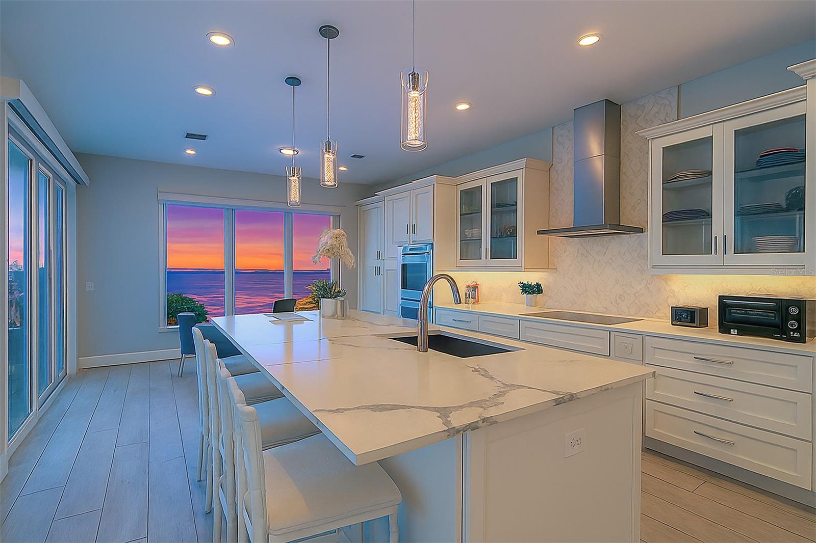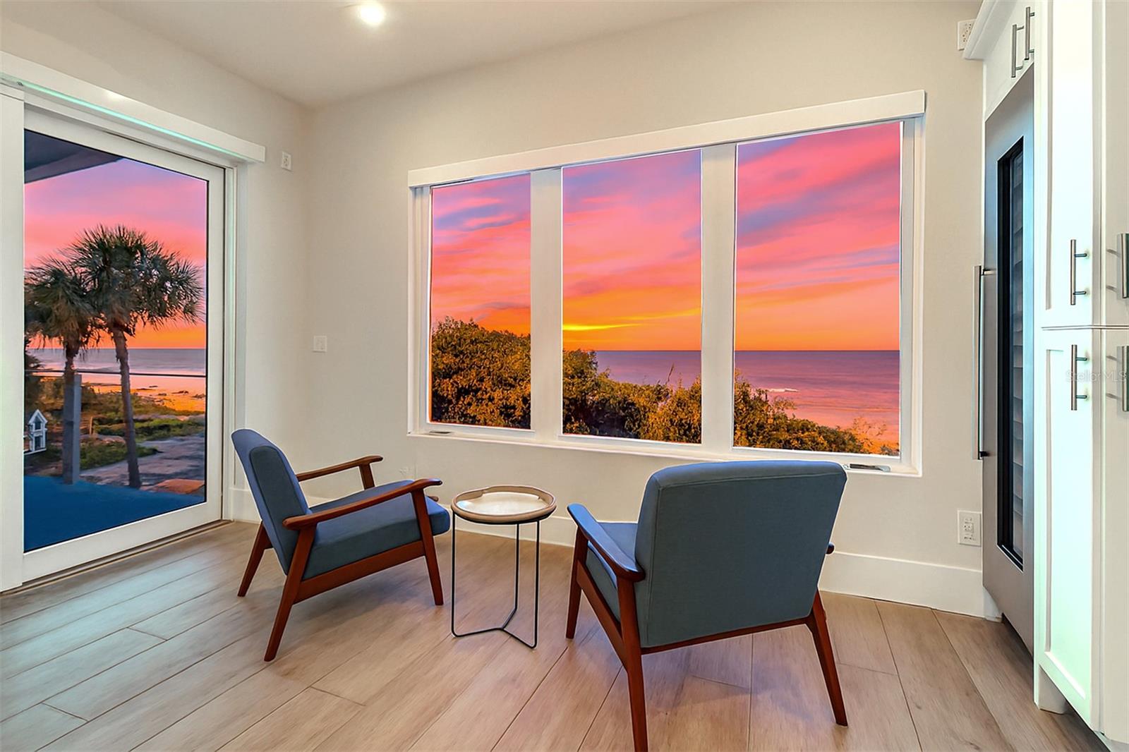 Direct beachfront luxury home in Indian Rocks Beach. Experience modern coastal living in this exceptional single-family home in sought-after Indian Rocks Beach. Built in 2022, this contemporary masterpiece combines striking design, quality construction, and breathtaking views, offering an unparalleled Florida lifestyle. This spacious four-bedroom, 5.5-bath residence boasts over 5,500 total square feet, 3,870 square feet under air, with solid block construction and storm-rated tinted windows and doors for energy efficiency and turtle protection. A three-car tandem garage accommodates up to six vehicles. Go outside to your private paradise with a beachfront heated swimming pool and hot tub, expansive lounge deck with sun chairs, picnic tables and barbecue grill, and a private path with direct access to the sugar-sand beach. Inside, a custom double-door entry with etched glass tropical artwork welcomes you into a grand foyer with elevator access to all four levels. The main living level offers a coastal-elegant ambiance with floor-to-ceiling windows framing epic water, beach, sunrise and sunset views. Driftwood-inspired plank tile flooring flows throughout. The gourmet chef’s kitchen is a dream with a large island with seating, premium Thermador stainless steel appliances, built-in double ovens, cooktop range and hood, full-size wine refrigerator, custom wood cabinetry, white with gray veined quartz countertops, intricate tile backsplash and designer pendant lighting. Both the kitchen and living area open to a spacious balcony overlooking the pool and beach. This level also features a guest bedroom with en suite, powder room, and laundry/mechanical room. The third level hosts the luxurious beachfront primary suite with a sprawling balcony, spa-inspired bath with a free-standing soaking tub, custom tile shower with glass enclosure, and a walk-in closet with custom built-ins. Two additional bedrooms with en suites, each with designer baths, share a hallway featuring a stylish wet bar with sink, mini-refrigerator and stone countertops. The top floor offers a unique loft-style studio complete with a kitchenette, queen-size pullout sofa, full bath, and two sliding doors leading to a rooftop terrace with 360-degree panoramic views of the Gulf and beyond. Ideal as a primary residence, vacation retreat or high-income investment property, this home has no minimum rental restrictions and comes fully furnished with elegant coastal décor, turnkey and ready to enjoy. In walking distance to charming shops, boutiques, restaurants and pubs, with convenient access to Clearwater Beach, major bridges and two international airports, enjoy world-class fishing, snorkeling, paddle boarding, boating, or simply unwind on the beach with a cold drink as the sun sets over the Gulf.