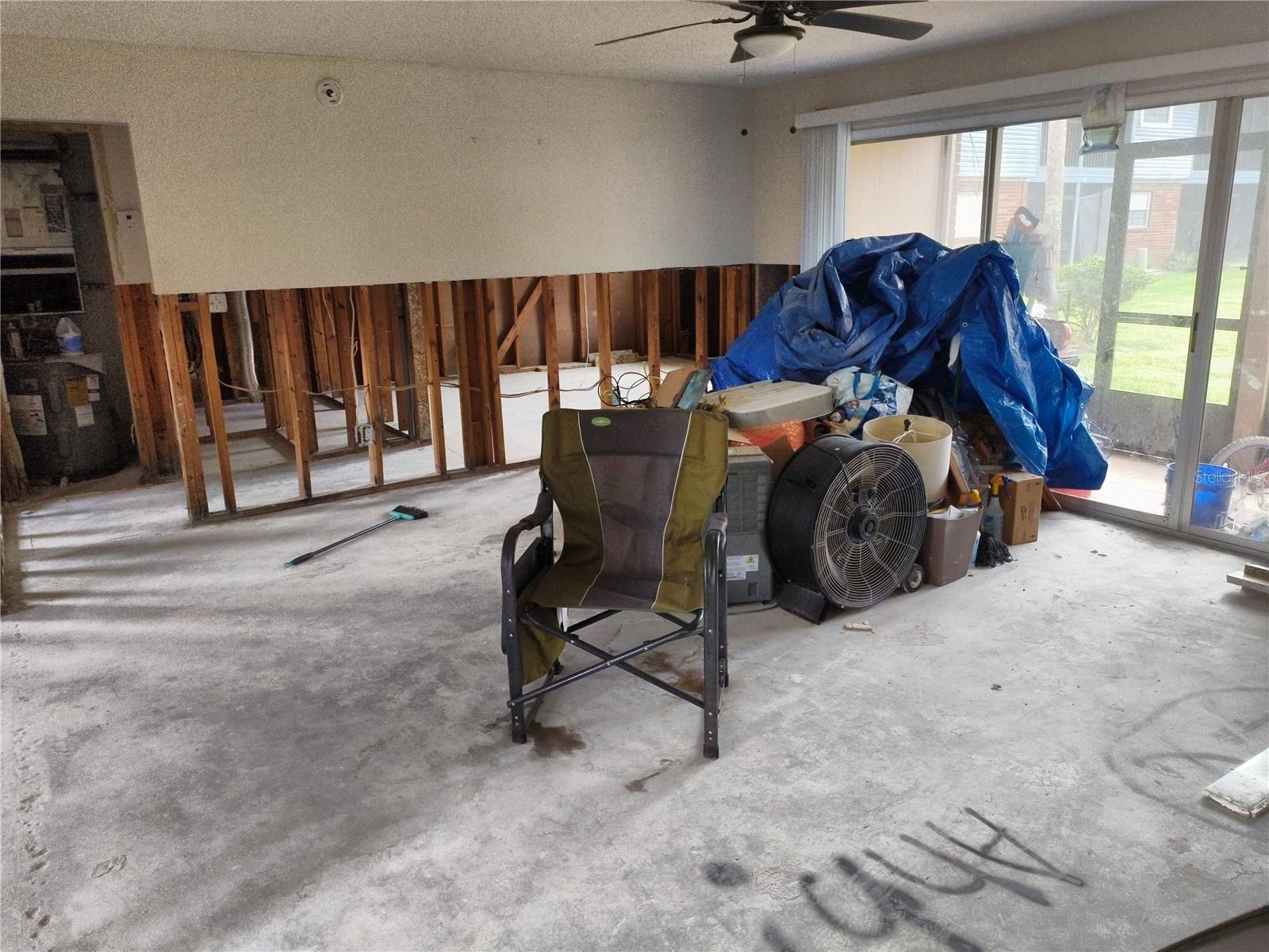 Welcome to the charming Venetian Country Club community, where Florida living meets comfort and convenience. This inviting ground-floor, split-plan home offers 2 spacious bedrooms and 2 bathrooms, perfectly designed for privacy and functionality. A brand-new roof and patio set the stage for a fresh start, while the open, light-filled layout brings warmth and airiness to every corner. The property includes an in-unit laundry closet with washer/dryer hookups for added ease. Recently, the unit experienced flooding; however, all affected walls, flooring, cabinetry, and appliances have been professionally removed, leaving a completely clean slate. The association will be replacing the flood-damaged walls and flooring in the coming months, giving you the chance to tailor finishes and details exactly to your taste—whether creating your own peaceful retreat or a thoughtfully designed investment property with excellent rental potential. Outside your door, the community embraces a relaxing, coastal-inspired lifestyle, offering a beautifully maintained clubhouse, a sparkling pool, and lush surroundings set against the backdrop of the scenic East Bay Public Golf Course. The HOA handles cable, internet, exterior maintenance, common grounds upkeep, pool care, clubhouse access, and fitness room use, ensuring worry-free living. This pet-friendly, no-age-restriction community is ideally situated just minutes from Largo Central Park, shopping centers, pristine Gulf Coast beaches, serene nature trails, I-275, Tampa International Airport, and all the vibrant attractions of Tampa, St. Petersburg, and Clearwater. Here, you’ll find a rare opportunity to customize a home to your vision while enjoying all the benefits of a prime Florida location and a welcoming neighborhood.