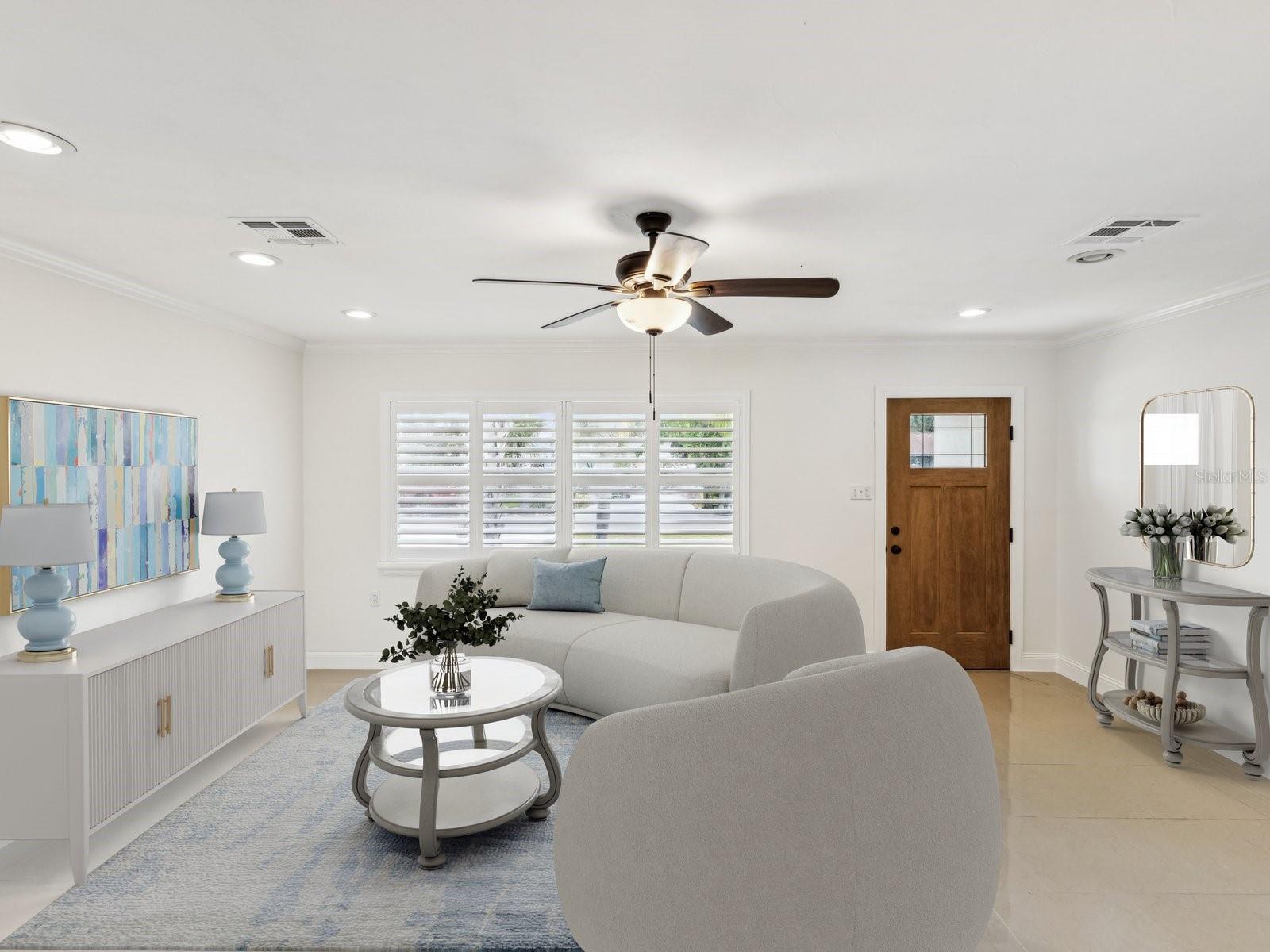 One or more photo(s) has been virtually staged. Welcome to your dream home in the highly sought-after, A-rated Anona school zone! This beautifully renovated 3-bedroom, 2-bathroom residence offers the perfect blend of comfort, style, and energy efficiency. Step inside to a natural light-filled split floorplan featuring a spacious living area and a bonus room ideal for a home office or playroom. The open-concept kitchen is a showstopper with brand new cabinetry, countertops, and stainless steel appliances—perfect for everyday living and entertaining. Enjoy the elegance of plantation shutters throughout and the peace of mind that comes with fully paid-off solar panels delivering long-term energy savings. Retreat to the luxurious primary suite featuring a custom walk-in closet and a stunning en-suite bathroom. Outside, relax under the covered rear patio or host unforgettable gatherings in the tropical oasis backyard, complete with lush landscaping, a cozy firepit, and plenty of room for a pool. Additional highlights include a new hot water heater, electrical upgrades, LED lighting and a location that can't be beat—just minutes from award-winning Gulf Coast beaches, top restaurants, shopping, and grocery stores. This is Florida living at its finest—don’t miss your chance to own this move-in ready gem!