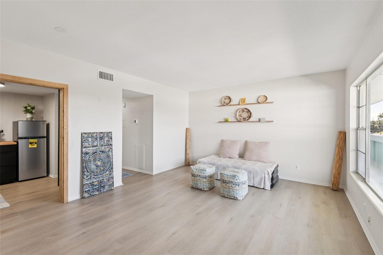 One or more photo(s) has been virtually staged. Welcome to your sunny sanctuary at “Top of the World”! Step into this beautifully updated 1-bedroom, 1-bath condo where thoughtful design meets everyday comfort. The open, remodeled kitchen features crisp cabinetry, modern finishes, and a welcoming layout perfect for cooking or catching up with friends. Luxury vinyl plank flooring runs throughout, giving the space a seamless, contemporary feel, while the refreshed bathroom, updated electrical, and new AC and water heater make life easy and worry-free. The bedroom is a peaceful retreat with a stylish feature wall and an organized IKEA closet system, and there’s even a flexible bonus space ideal for a home office, workout area, or guest nook. The A/C, water heater, flooring, and kitchen were ALL replaced last year, and the Fridge is brand new! #75 is your assigned parking space. Beyond your door, this active and friendly community offers two golf courses, multiple pools, a hot tub and sauna, tennis and pickleball courts, a state-of-the-art fitness center, and a lakeside pier to unwind by the water. You’ll also find walking paths, dog parks, and even a café right on-site. Laundry facilities with new machines and a convenient app make chores a breeze, and the 24/7 gated security ensures peace of mind. Ideally located in central Clearwater, this condo offers the perfect mix of convenience, comfort, and resort-style living. Come see for yourself why every day here feels like a vacation!