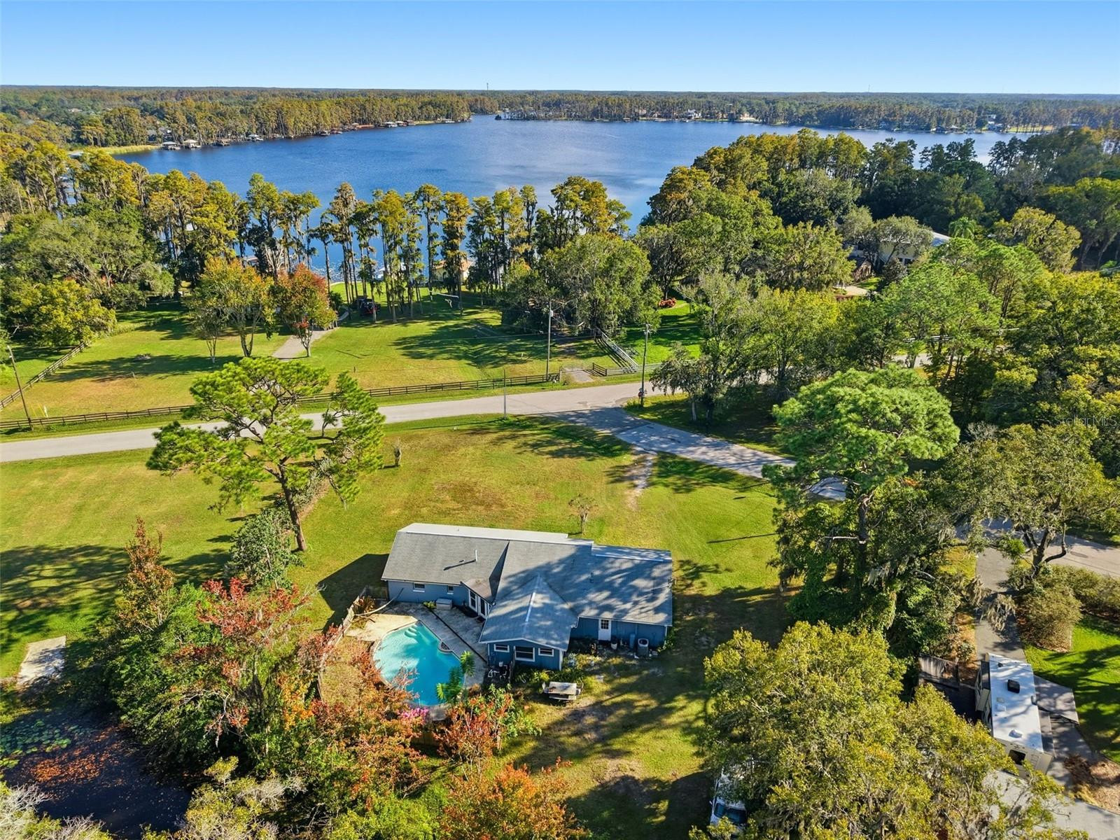 Step outside to your private oasis: a large patio, sparkling saltwater pool with child safety fence, and peaceful wooded views along 80 feet of waterfront on Red Bug Lake—perfect for kayaking, paddleboarding, or relaxing by the water.