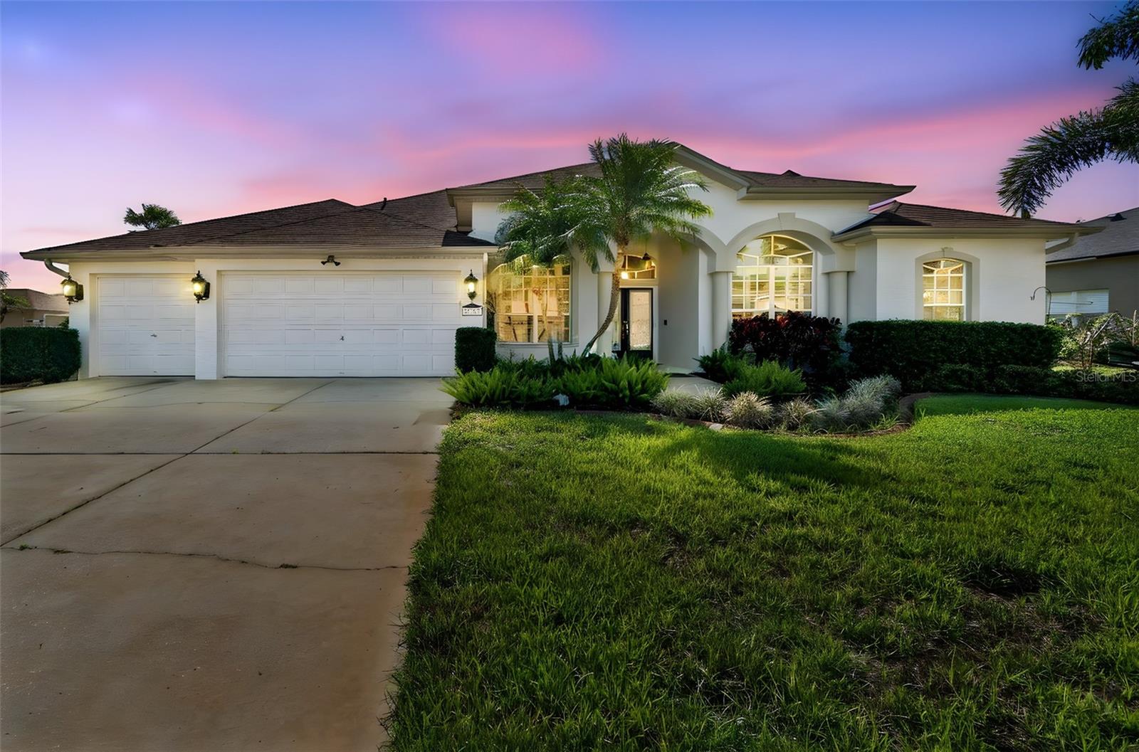 This beautiful 4 bedroom plus office/den, 3 bathroom, 3 car garage with a large bonus room and a 3 way split plan sits on a corner lot of the col-de-sac and is located in the sought after gated community of Foxwood. The home features paid in full solar panels for the pool as well as panels that provide power for the home. These two separate units extend your swim time by months and SIGNIFICANTLY REDUCE YOUR ELECTRIC BILL (IN 2025 AVERAGE ELECTRIC BILL WAS $139.88 A MONTH)! The ROOF WAS REPLACED IN 2019 and the 25 year golden pledge warranty is transferable to the new owners - giving you piece of mind through 2044. All of the bedroom windows are new and also come with a transferable lifetime warranty. The irrigation system is on a well, which will also reduce your water bill substantially. Enter this spectacular home through double doors to the foyer, which provides an immediate view of the gorgeous pool area. Inside the home you will find hardwood flooring throughout the main living area, den/office and master bedroom. All 3 additional bedrooms feature new carpeting. Bedrooms 2 and 3 also feature window bench seating and walk in closets. The vast majority of the windows in the home are equipped with plantation shutters and the sliders in the living room and kitchen come with high quality electric shades. Crown molding and double tray ceilings in the primary bedroom and dining room contribute to the wow factor. The kitchen is a cook's dream with plenty of cabinets, newer appliances and more than enough counter and serving space. A built in oven and an under sink reverse osmosis system round out the kitchen. Adjacent to the kitchen is the large family room and makes this area perfect for entertaining. Upstairs you will find a large bonus room that presents so many options for its use. in addition, off of the bonus room is a walk-in storage area large enough for all of your extras. The home comes with a newer hot water heater and gives you the option of gas or electric for your range and dryer. Outside on the lanai, the current owners have added an outdoor kitchen - making cooking out that much more enjoyable. Foxwood is a delightful community with A rated schools, 2 separate parks and a pavilion inside the gated community. This is a home you are going to definitely want to see!