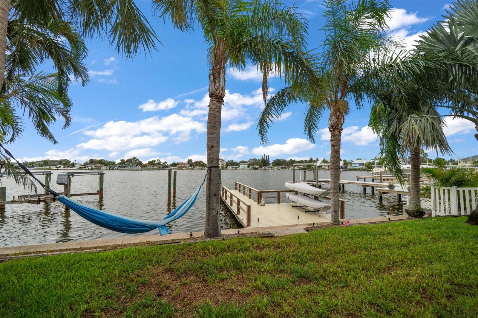 Beautifully remodeled and COMPLETELY furnished beach home located on a lovely protected cove offering wide water views from multiple areas. This is truly a beach charmer! Perfect location in the popular city of Indian Rocks Beach, known for its small-town atmosphere and pedestrian friendly environs, the spacious and open layout features two bedrooms, two full baths and additional living areas designed for easy carefree living! Exquisite kitchen! Chef’s will love this newer kitchen with neutral finishes, gleaming quartz counters, stainless appliances, large pantry and lots of cabinetry. Gathering with family or friends in the spacious dining area will create memories to last a life time with its captivating views. Appreciate the private dock area for fishing, mooring your boat, launching your kayak or jumping on your paddle board, plenty of dock space for all water sports! This charming beach property is also a fantastic investment with its sought-after community location that allows for short-term rentals, and its easy 2 minute walk to gorgeous beaches. This is not only a wonderful primary home but an ideal vacation retreat that can generate income thereby offsetting expenses where all the work is done! State of the art Nano folding doors, gorgeous ceramic tile flooring, beautifully remodeled kitchen, baths and impressive furnishing. Additional attributes include tankless hot water, oversized one car garage with laundry area and EV charger, plenty of additional parking for up to 6 vehicles in the low maintenance attractive driveway finished with pavers, and a completely fenced yard.