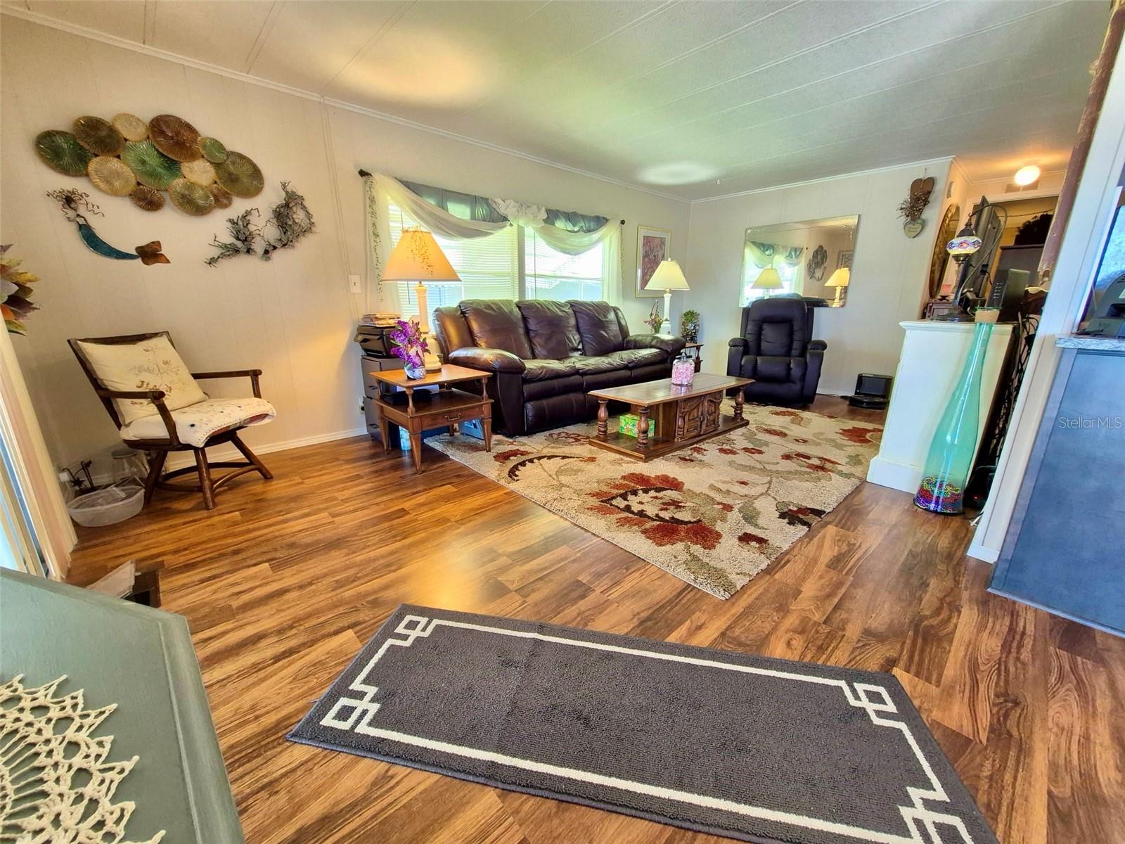 Experience affordable living that offers community and amenities. Check out this lovely double wide manufactured home in Blue Jay Estates, a friendly and active 55+ community where you own the land! The gourmet kitchen is a dream come true. It features newer appliances, custom cabinetry, and plenty of counter space for cooking and entertaining. Both bedrooms have walk in closets and both bathrooms have been updated. Enjoy 120 sq ft of additional living space in the enclosed bonus front porch that enhances both function and curb appeal. Sit and enjoy the fresh air on the large side screened porch or in the front or back paved patio areas. New vapor barrier installed in 2024. This home is move in ready. The maintenance fee is only $230 a month which includes water, sewer, trash, lawn care, and more.