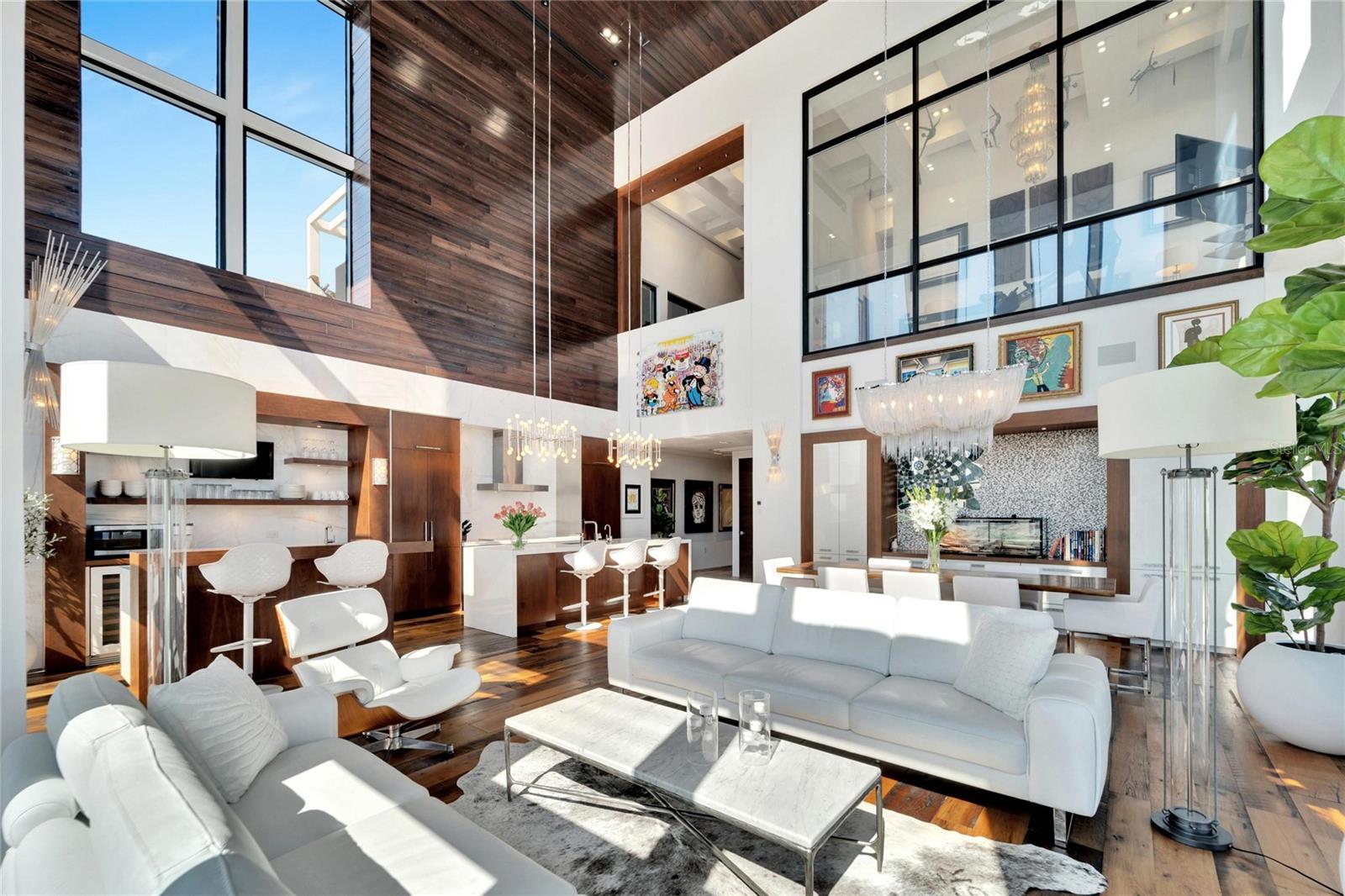 Welcome to this magnificent two-story PENTHOUSE located in booming downtown St. Petersburg. Situated on the top two floors of The Walker Whitney Plaza, this unique and astonishing penthouse offers some of the most breathtaking water views of Tampa Bay and spectacular city views of downtown St. Petersburg. Upon entering you'll be greeted by 30-foot-high tongue and groove wood ceilings and floor-to-ceiling walls of glass, allowing for an abundance of natural light and panoramic views. The interior boasts exquisite details, including rich wood plank flooring crafted from seven species of reclaimed wood, solid wood slab doors with heavy metal frames, dazzling chandeliers, sconces, and remote-control roller shades on every window. One of the highlights of this penthouse is the stunning floating staircase with solid plank treads, floor-to-ceiling wood-paneled walls, and custom art deco railings. Featuring a modern kitchen direct out of a magazine swanked with Sub-Zero and Wolf appliances, including double induction and steam ovens, an induction cooktop, a hidden walk-in pantry, and a colossal island with waterfall quartz counters. The kitchen also incorporates a beverage center with a bar height island, sink, wine fridge, double drawer refrigerator, television, and a gourmet ice machine. The den, currently used as an office, offers 15-foot tall, coffered tray ceilings and a wall of glass sliding doors leading to a 300 sq ft private lanai with breathtaking city views. The large second-floor primary suite boasts 15-foot coffered tray ceilings, Smart Glass technology for instant privacy, a wet bar with a refrigerator and filtered water, and a spacious walk-in closet with built-in shelving and three tiers of hanging rods, drawers and even a few hidden perks! The primary bath is a luxurious retreat, featuring floor-to-ceiling walls of marble, a wood-beamed ceiling, an 11-foot-long vanity, a large marble and glass shower, a mosaic tile feature wall, and a large soaking tub. Additional features of this one-of-a-kind property include Smart Home technology throughout, built-in speakers in every room, LED lighting, and a two-story layout that provides unmatched 180 views unlike any other. This fabulous penthouse has sensational finishes and lighting from Restoration Hardware. The contemporary boutique building, with only 56 units, recently underwent a multi-million renovation giving a buyer peace of mind that their investment is protected. Fully funded reserves, all assessments paid and the reserve study is completed showing no issues with the building. With no shared walls, this penthouse provides ultimate privacy. Additionally, this penthouse offers a gated entry, two under building secured assigned parking spots and electric charging stations in the garage. The entire side of the building beautifully displays a 15 story mural for the 10th anniversary of the Shine Mural Festival.. It's conveniently located within minutes of world-class museums, fine dining, art, restaurants, shopping, marina, parks, the Pier, the Vinoy, and much more. Don't miss the opportunity to own this extraordinary penthouse combining luxury, breathtaking views, and a prime downtown location making it so much more than a home. Come experience the lifestyle. Located outside both FEMA and evacuation flood zones offering the comfort of being able to stay in your home… the Walker Whitney never even lost power during the recent hurricanes.
