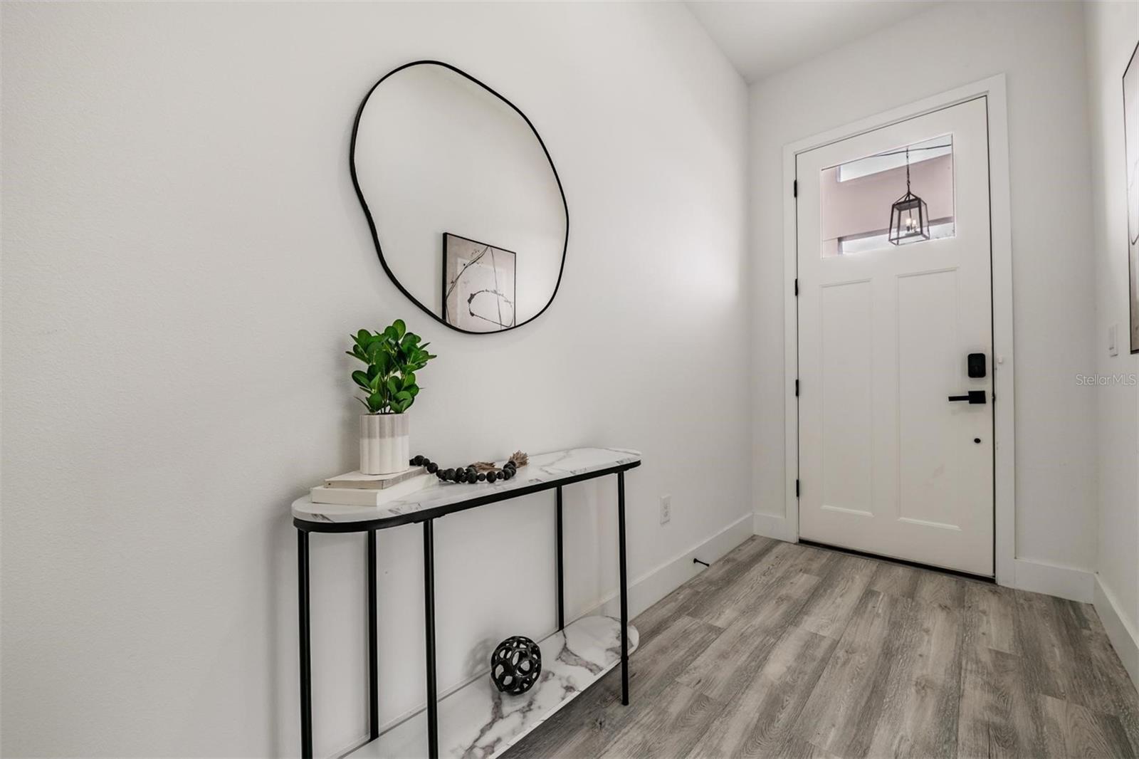 Step into modern living with this stunning, newly built single-story home in the heart of West Tampa! Completed in 2024, this 4-bedroom, 2-bathroom gem combines custom design with thoughtful details to create a space that’s as functional as it is beautiful. From the moment you enter, the open floor plan invites you to explore sleek finishes like black matte fixtures, remote-controlled fans, wide 3-inch baseboards, and stylish 12 foot tray ceilings. The home boasts new black out shades, designer tile and luxury vinyl plank flooring throughout, offering both elegance and durability. The kitchen and bathrooms are a showstopper, featuring quartz countertops with waterfall edge, dual vanities, glass-enclosed showers with dual showerheads, and relaxing soaking tubs that exude spa-like luxury.