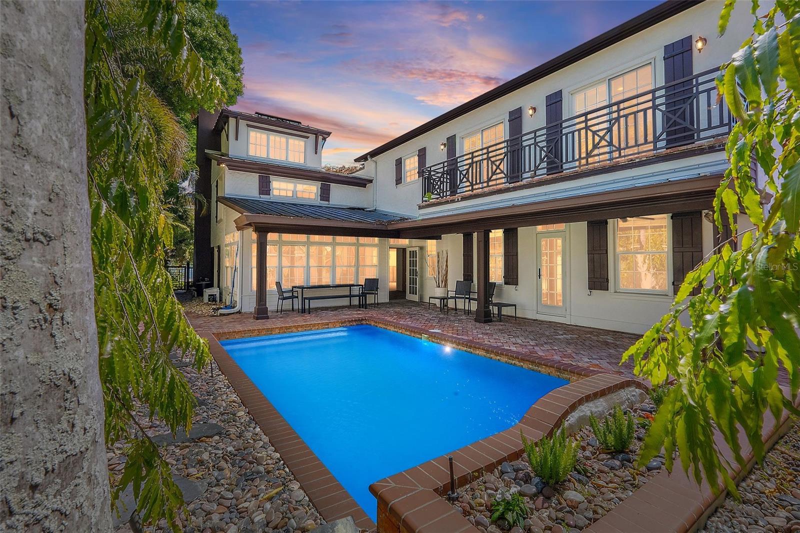 This architecturally distinctive energy-efficient home sits on prime waterfront property with a water lot and dock on Coffee Pot Bayou. THIS IS THE OPPORTUNITY YOU HAVE BEEN WAITING FOR! This 4-bedroom, 3.5 Bath pool home with an oversized 2-car garage (alley access) Is located in COFFEE POT BAYOU which is one of the oldest neighborhoods in St Petersburg. This upscale residential neighborhood is known for being one of the most coveted premium living communities in Tampa Bay. It is walkable to vibrant downtown St Petersburg and all the nearby parks. Enjoy expansive views of the Bayou from your multiple front porches and have dolphin and manatee sightings be part of your everyday life. Deeded private water dock across the street with a 12k lift, electric, and water. This home has been professionally remediated on the main level and the second level with all 4 oversized bedrooms and 3 full bathrooms is completely in-tact ready to go. With the option of 2 private and luxurious master suites with their own finely detailed bathrooms and access to a front balcony overlooking the sparkling waterfront. Current primary with vaulted ceilings, a walk-around en-suite bathroom with picture-perfect soaking tub, walk-in shower, and massive custom closet. The second option for a primary features a large room with a second-level loft, an en-suite stunning custom bathroom with dual vanities, and a walk-in shower. Up a few short steps, you will find a private wing with 2 additional bedrooms, a full beautiful bathroom, and a great room featuring a wet bar area and a full-size subzero wine/beverage cooler. Ideal for guests or kids. Let your imagination guide you in restoring the main level which has been professionally remediated and waiting to be put back to its glory. Large sprawling rooms flow from one to the next yet separate and distinct. A formal entry, large living room with fireplace, dining room, large kitchen, private office/den/media room. Powder bathroom and utility room. A bright and glorious living room with vaulted white ceilings leading out to the Pebbletec pool is surrounded by imported handmade brick pavers. Outside features: vintage stucco, long-lasting metal roof and pergolas. Solar panels, impact windows, and composite exterior shutters look like real wood for durability and low maintenance.