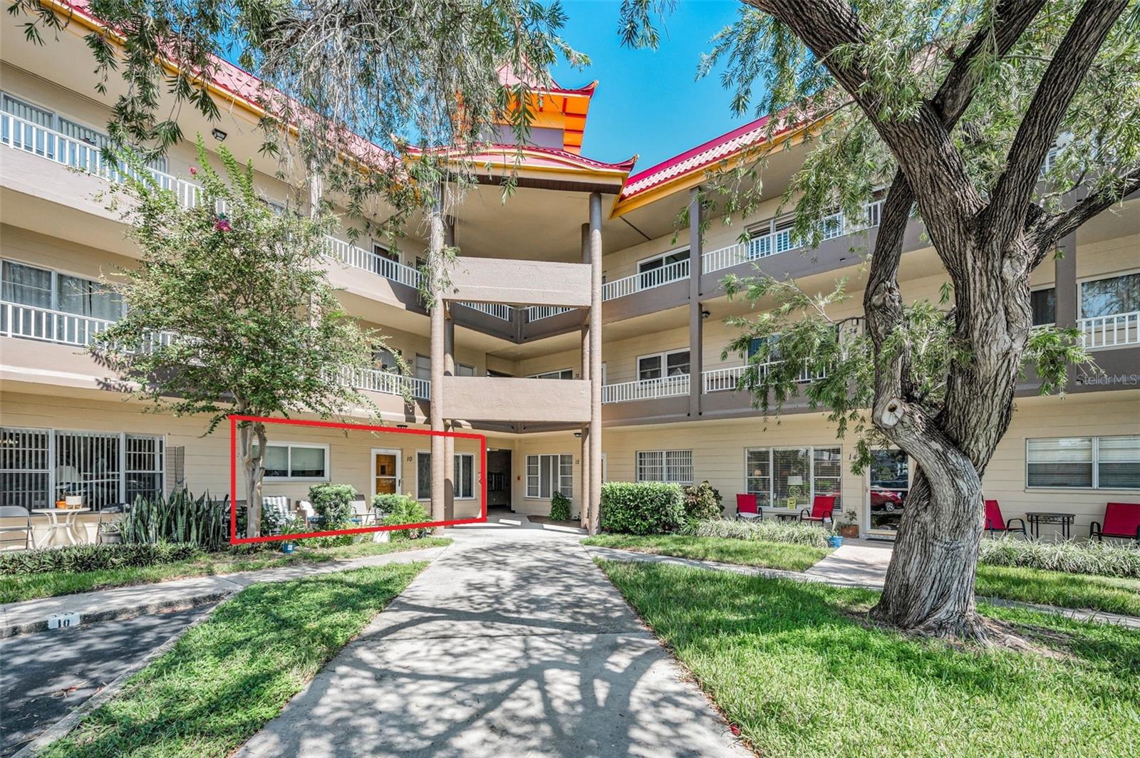 Imagine starting your day with coffee your own patio, the morning sun filtering in as the neighborhood quietly comes to life. At 2402 Ecuadorian Way #10, that’s not a vacation—it’s your everyday reality. Located within the sought-after On Top of the World community, this rare ground-floor condo invites you to live effortlessly. Step out front to your charming garden patio, or slip out back to your rear patio—TWO distinct outdoor spaces that give you options for both peaceful solitude and easy entertaining. No stairs, no stress—just simple, accessible living. Your designated parking space is just steps away and this unit has a new all-in-one washer/dryer. Inside, the home opens up into a flowing layout with no carpet anywhere, creating a clean, low-maintenance environment that feels both modern and practical. The living and dining spaces connect naturally, making it easy to host friends or unwind at the end of the day. Both bedrooms offer comfortable retreats, while a new A/C system keeps everything cool and efficient year-round. But what truly sets this home apart is the lifestyle waiting just outside your door. Spend your afternoons lounging by the resort-style pool, meet neighbors over a round on the golf course, or stay active with tennis, shuffleboard, and scenic walking paths. Bring your dog to the community park, join in on clubhouse events, or end your evenings at the community dock watching the sun dip into the horizon. Here, life moves at the pace you choose—relaxed, social, active, or all of the above. This isn’t just a place to live. It’s a place to settle in and truly enjoy every day life!