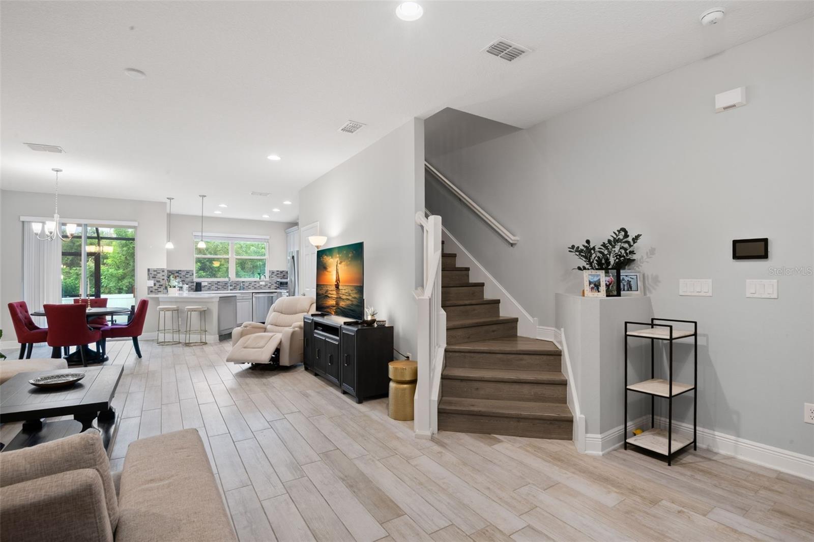 - Interior Features: High Ceilings, Living Room/Dining Room Combo, PrimaryBedroom Upstairs, Solid Wood Cabinets, Stone Counters, Walk-In Closet(s)