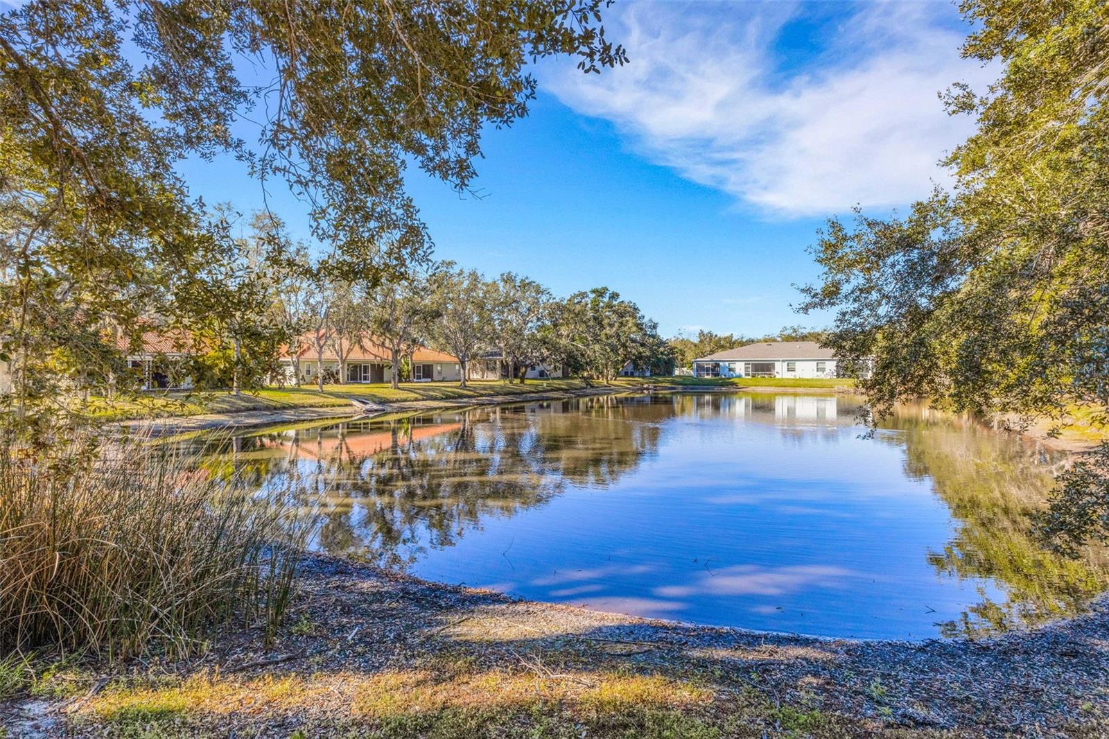 Wake up to water views, birdsong, and breezes—this is villa condo living done right. This beautifully maintained 2-bedroom, 2-bath villa condo offers the perfect blend of comfort, calm, and connection to nature, all within a sought-after 55+ community designed for easy, enjoyable living. Step inside and let your eyes travel straight to the peaceful pond view, visible from both the living room and the screened-in porch—your front-row seat to daily visits from herons, wood storks, and other wildlife. Morning coffee feels better when nature shows up on time.