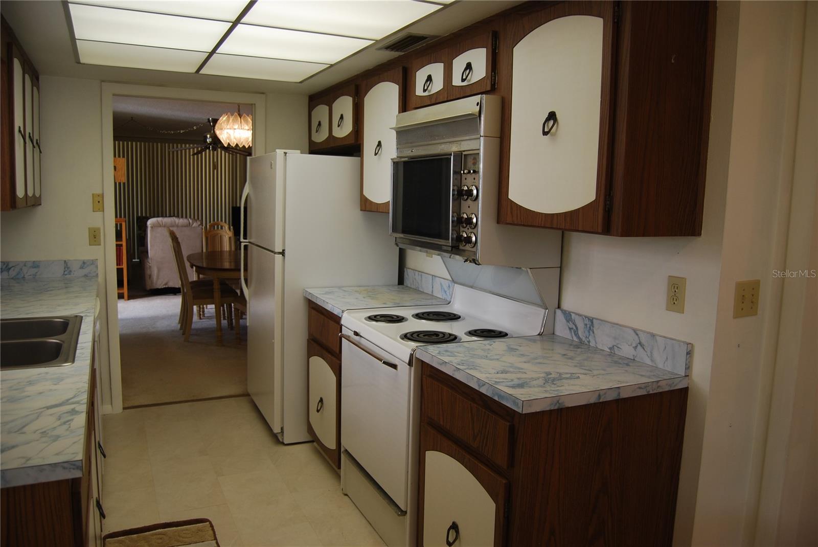 The second bedroom, which could also serve as a bonus room, features abundant natural light with its own set of sliders that access the stunning wrap-around patio. A cedar-lined closet and a pocket door enhance its functionality. The Jack & Jill full bath accesses both bedrooms. The kitchen reflects its era with well-maintained, retro-style appliances, blending vintage charm with practicality along with plenty of storage and eat in kitchen area. The large dining room area is light and bright from the sliders opening to the private patio.
