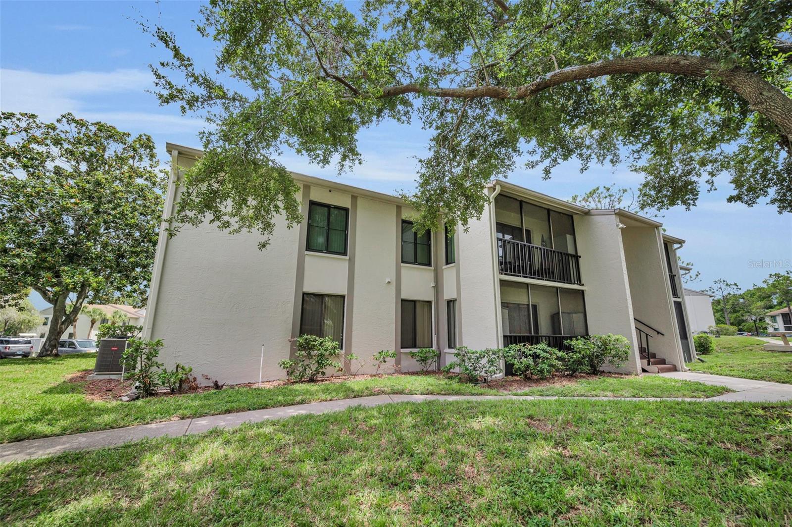 Impeccably updated 2-Bedroom, 2-Bath condo in the desirable Pine Ridge at Palm Harbor, A Pet-Friendly 55+ Community! Discover one of the finest condos currently available in Pine Ridge at Palm Harbor, a well-maintained, active retirement community. Can be purchased as your primarty residence, vacation home or investment property with no wait-time to rent! This beautifully updated second-floor unit overlooks the peaceful courtyard and is conveniently located just steps from the community pool and clubhouse. Move-in ready, this residence features a spacious and light-filled living area with additional windows and sliding glass doors leading to a screened and enclosed patio, ideal for enjoying the Florida lifestyle. High-quality, wide plank wood laminate flooring flows through the living room, dinette, and hallway, while neutral carpet provides comfort in both bedrooms. The generously sized primary suite includes a walk-in closet and an ensuite bath, thoughtfully updated in 2018 with a custom vanity, granite countertop, updated lighting, and mirror. The secondary bedroom also offers a walk-in closet and is adjacent to a stylishly renovated guest bath (2019) featuring a custom wood vanity, updated light fixture, and mirror. The kitchen, renovated in 2018, boasts custom solid wood, soft-close cabinetry, granite countertops, and recessed lighting. Appliances include a range and dishwasher (2019), microwave (2018), and refrigerator (2023). Additional updates include raised panel interior doors (2021), Pella sliding windows throughout (2022, excluding patio sliding door and small dinette window), a water heater (2016), and an HVAC system (2020). An in-unit laundry closet with washer and dryer adds to the convenience.