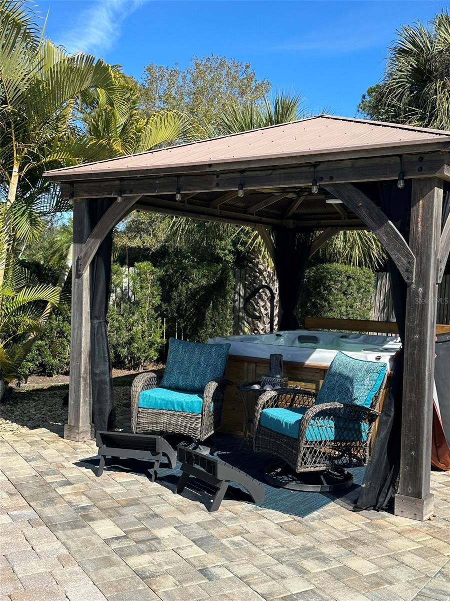 Estates. Large .38-acre lot, fully enclosed with vinyl fencing. Beautiful pool and hot tub surrounded by paver deck. With the firepit and two gazeboes, this creates a superb outdoor entertaining area. Coupled with the expansive area in the back, this creates a combination of indoor and outdoor entertaining. This home has an automatic sprinkler system to keep the grass and lush landscaping alive and healthy. Upon entering the home, there is a spacious family room with the kitchen and breakfast bar. The kitchen boasts stainless steel appliances and tons of countertop space. Open floorplan throughout the home. The master has a huge walk-in closet as well an on-suite bathroom. The other 3 bedrooms are spacious with upgraded closets. The fresh neutral paint will match any decor. New ceiling fans, updated faucets, Plantation shutters and faux wood blinds throughout. Many recent updates include a new Roof 2020, new A/C 2023, and a new electrical panel 2021. Less than 1/2-mile is the Countryside Country club with golfing only 1 block away. On the side yard there is a place to store your boat on a paved area behind the fence. Do not miss your chance to see this well-kept home in immaculate condition. - Virtual Tour: https://www.propertypanorama.com/instaview/stellar/TB8468486