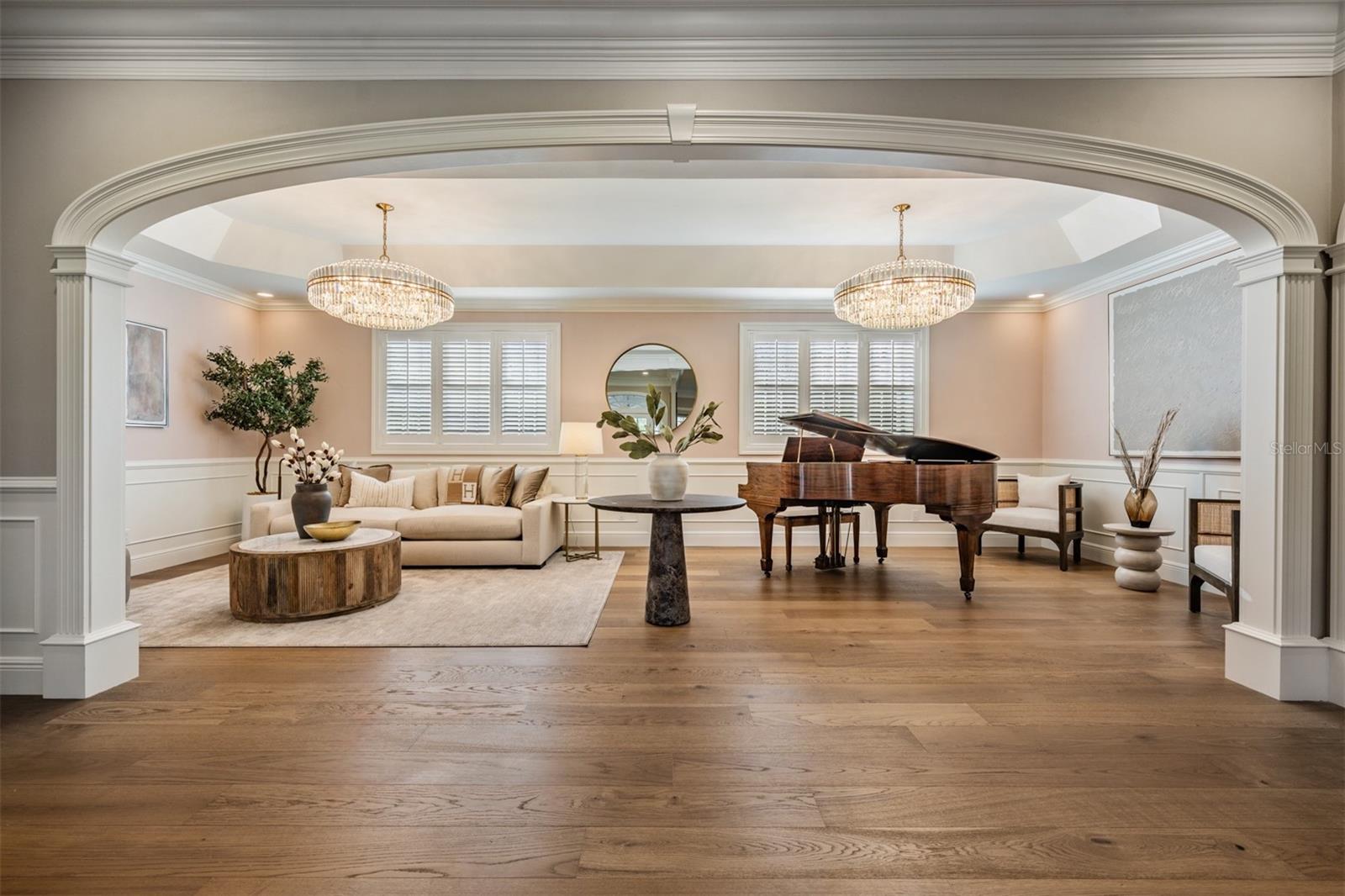 Timeless architecture, exceptional craftsmanship & refined luxury living in Palm Harbor! Perfectly positioned on a private cul-de-sac in the prestigious community of Cobb’s Acres, this stunning 5,700 square-foot estate is coming to market for the first time after being meticuliously redesigned to the highest standards of modern luxury. A charming brick path welcomes you to the covered front porch where peaceful views of Lake Tarpon create a tranquil setting. From the moment you enter through the double French glass doors, the home unfolds with elegant features, designer finishes, and beautifully curated spaces - details rarely found in today’s homes. The foyer flows into the formal living room, music room, & formal dining room, & also features a powder bath highlighted by a hand-carved Italian marble sink. A gracefully arched hallway leads to the heart of the home: a stunning great-room-style living area designed for both everyday living & refined entertaining. This wing features an oversized living room, spacious dining area, & a chef’s dream kitchen. Floor-to-ceiling custom cabinetry surrounds a professional appliance suite; a 60-inch Wolf gas range with double ovens, pot filler, & custom hood, along with a Sub-Zero refrigerator & freezer, Miele dishwasher, Scotsman ice maker, & a custom coffee bar. A beverage station with wine fridge & custom built-in pantry provides optimal functionality. Adjacent to the main living space is an oversized bedroom or bonus room, a full bathroom w/ walk-in shower near the pool, & perfectly placed closet designed for laundry or addt'l utility. White oak flooring runs throughout, complemented by custom wainscoting & crown molding. Generous closet space throughout the home provides exceptional storage & organization. Sconce lighting lines the hallways and leads to the upper level where five of the bedrooms are located. At the top of the stairs, the main laundry room offers abundant cabinetry & storage. Two bedrooms share a beautifully designed marble bathroom featuring dual sinks, a large walk-in shower, private water closet, & custom cabinetry. Two add'l bedrooms each feature private en-suite bathrooms - One w/ a soaking tub & shower combination finished in marble, while the other offers an arched walk-in shower with oversized wood vanity. Down the hallway, an arched entryway introduces the private primary wing, complete with a color-drenched office flooded with natural light. Enter the primary retreat through 8 foot white oak solid doors, revealing a sanctuary designed for relaxation. The primary bath centers around a soaking tub & includes dual vanities with custom cabinetry, large walk-in shower, & a private water closet with a Toto fixture. The primary closet offers exceptional storage, custom lighting, & a steam closet for added convenience. The outdoor spaces complement the home beautifully - a large rounded patio reflects the timeless distinction, while the covered porch provides a relaxing place to gather or unwind. The pool area is perfectly suited for Florida living, & the spacious private backyard offers room for outdoor enjoyment or recreation. The yard behind the home previously housed a batting cage for the baseball enthusiast. An oversized 3 car garage fits large vehicles while still offering space for storage, equipment, & recreational toys. Ideally located near award-winning Gulf beaches, championship golf courses, premier dining & shopping, Tampa Intl Airport, & downtown Tampa.