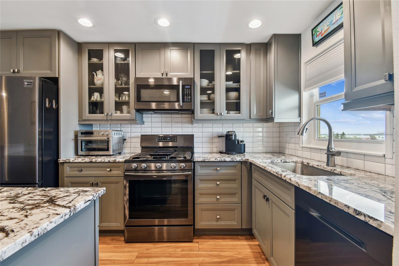 Classic Boca Ciega Bay sweeping vistas reimagined in this modern top-floor residence! This complete remodel created an open floor plan with new kitchen cabinets, stunning granite countertops, high-end appliances, dimmable lighting, hurricane-impact windows, beautifully updated baths and new flooring throughout. Natural light illuminates the quiet Florida room, which overlooks a new 2022 soft concrete, heated community pool. The Jamison building has passed its Milestone Inspection and Structural Integrity Reserve Study and allows long-term leasing (with some restrictions). Town Shores is a well-kept, 55-plus community that neighbors the vibrant downtown of Gulfport with its excellent restaurants, art galleries, beaches, parks, marina, library, a multipurpose senior center, historical tours, a dance hall and a calendar full of organized events. Town Shores residents enjoy direct access to water for kayaking, boat slips, four heated pools, tennis, shuffleboard, bocce ball and a clubhouse with a library, dining room, meeting spaces, billiards room and constant social events. Monthly dues include cable, internet, water, sewer, trash, recycling, natural gas, heated community pools, common area maintenance, building insurance and recreational facilities. The only utility you will need to cover is electricity. This rejuvenated residence offers a Florida getaway from a top-floor view.