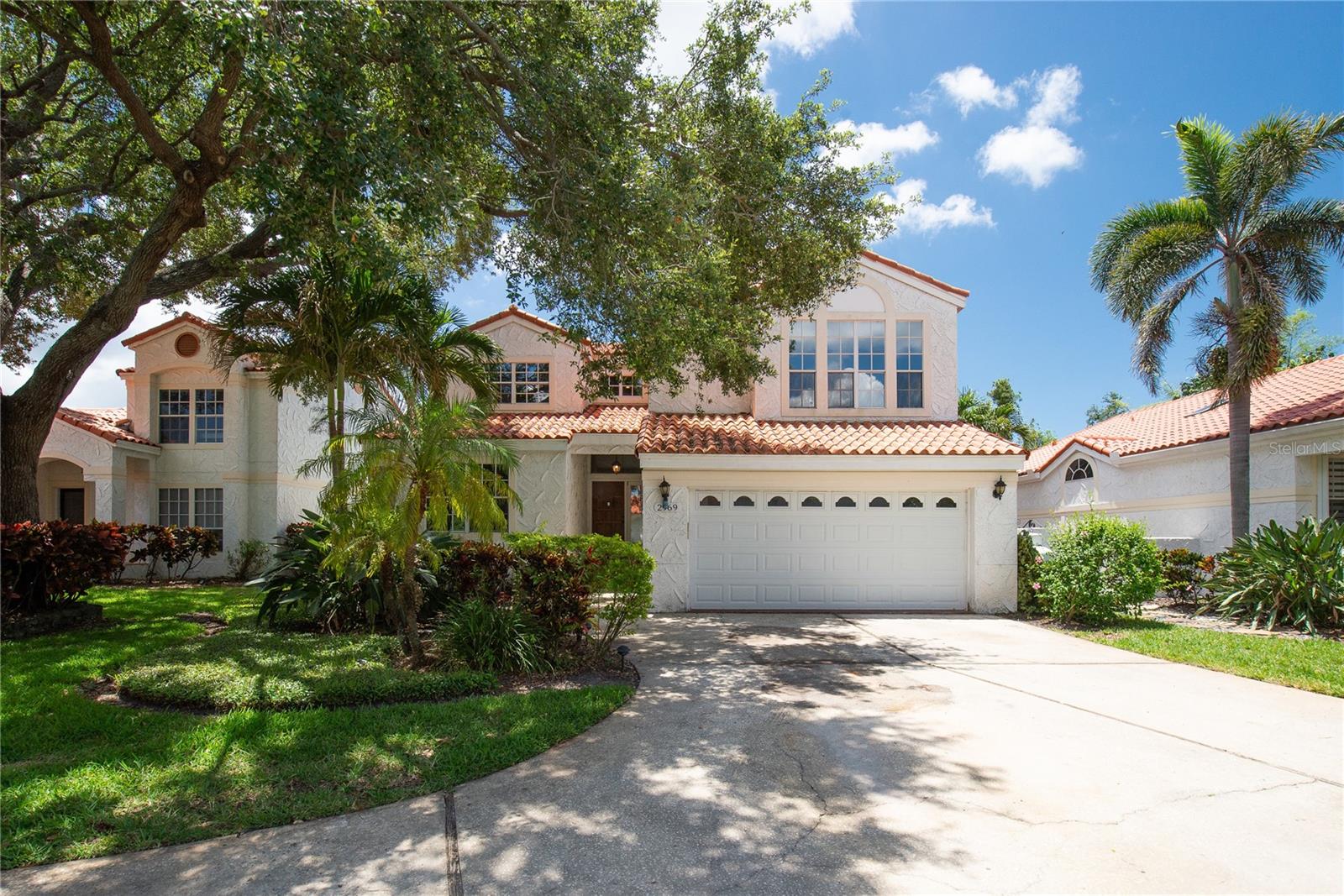 THIS MEDITERRANEAN POOL HOME HAS IT ALL – LOCATION, LUXURY & LIFESTYLE! Nestled in the highly sought-after Vizcaya community of Feather Sound, this beautiful 2-story Mediterranean-style salt water pool home offers elegance, space, and comfort with 3 bedrooms, 2 bathrooms, a den, 2 car garage and 2,383 sq. ft. of living space (3,236 sq. ft. total), this home sits on a 7,018 sq. ft. lot on a quiet cul-de-sac with no rear neighbors. Designed by Arthur Rutenberg who was ahead of this time, this home feels modern, from the first moment you step inside. Be wowed by 20-foot ceilings, large windows allowing lots of light, durable ceramic plank tile floors in the living area and custom shades on all windows. The Mexican Saltillo tile adds warmth and character to a spacious kitchen, that was remodeled with level 5 granite countertops, stainless steel appliances and travertine backsplash. Enjoy a large center island with bar seating and extra storage—perfect for entertaining! The open-concept living and dining areas offer seamless access to the covered lanai and backyard oasis with luxury outdoor furniture that convey. Enjoy family meals with pool views, or host fun gatherings with the fully-equipped outdoor kitchen with propane grill and of course cozy evening with wood-burning fireplace. The screened-in pool area includes a large salt water pool, jacuzzi, waterfall, and sun shelf, ideal for lodging or safe play for your family. Downstairs you'll find a guest bedroom and full bath, while upstairs, the primary suite boasts 9-foot ceilings, double doors, hardwood floors, a spa-like bathroom with river stone vessel sinks, granite countertops, a jacuzzi tub with travertine walls, walk-in shower, and a massive walk-in closet. A second upstairs bedroom currently serves as a home theater, complete with a projector, screen, and surround sound—all equipment conveys. The spacious den could easily be converted into a 4th bedroom or used as a home office. Additional highlights includes red clay tile roof 2016, both A/C unit are 2016 but well maintained and serviced, brand new pool pump and plumbing (2025), private fenced yard, updated sprinkler system. The Association fees are $220/month. The location is just perfect - minutes from I-275, Tampa International Airport, short drive to Downtown St. Pete, and the Beaches, in walking distance to Feather Sound Country Club, offering golf, tennis, swimming, and year-round events in one of the Bay Area’s most beautiful and walkable communities. This house is elevated. This is more than a home – it’s a lifestyle and your fortress. Seller is ready to sell.