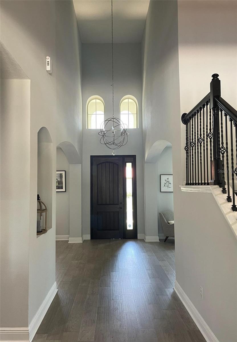 - Interior Features: Built-in Features, Ceiling Fans(s), Eat-in Kitchen, High Ceilings, Kitchen/Family Room Combo, Open Floorplan, Primary Bedroom Main Floor, PrimaryBedroom Upstairs, Smart Home, Solid Surface Counters, Solid Wood Cabinets, Stone Counters, Thermostat, Walk-In Closet(s), Wet Bar, Window Treatments