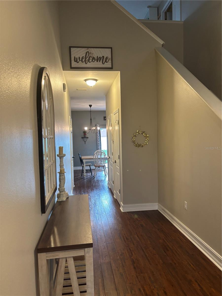 Excellent opportunity, look no further, here it is! This beautiful home has 2854 SQUARE FEET with 4 bedrooms and 3 bathrooms, and a 2-car garage on a large corner lot. No CDD fees! The front entrance invites you to immediately notice the lovely wide-plank hardwood flooring that flows beautifully throughout the entire house. The high ceilings speak volumes of openness and natural light. This home continues to please as you step into the spacious kitchen, family room combo, equipped with a central island, closet pantry and cabinets galore. The chef of the home can enjoy staying connected to everyone and everything while prepping meals in this open concept layout. Downstairs there is certainly plenty of room and options for you to have a formal living room, office/or flex space in addition to the kitchen, dining and family room areas. Upstairs, there is a central bonus area, and four bedrooms. The master or primary bedroom is massive with a lounge sitting area or baby space, a walk-in closet, and a private en-suite bath, which includes a separate shower and jetted tub. Let's not overlook the fully fenced backyard welcoming you to enjoy some relaxation outdoors. See for yourself, this community has a low HOA, no CDD, a very nice community pool, playground areas and it is located near all things necessary and fun. Conveniently positioned near several great restaurants, shopping and entertainment, lots of options to interest everyone! Schedule your viewing appointment and find home sweet home!