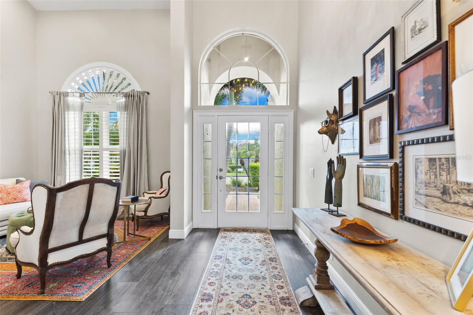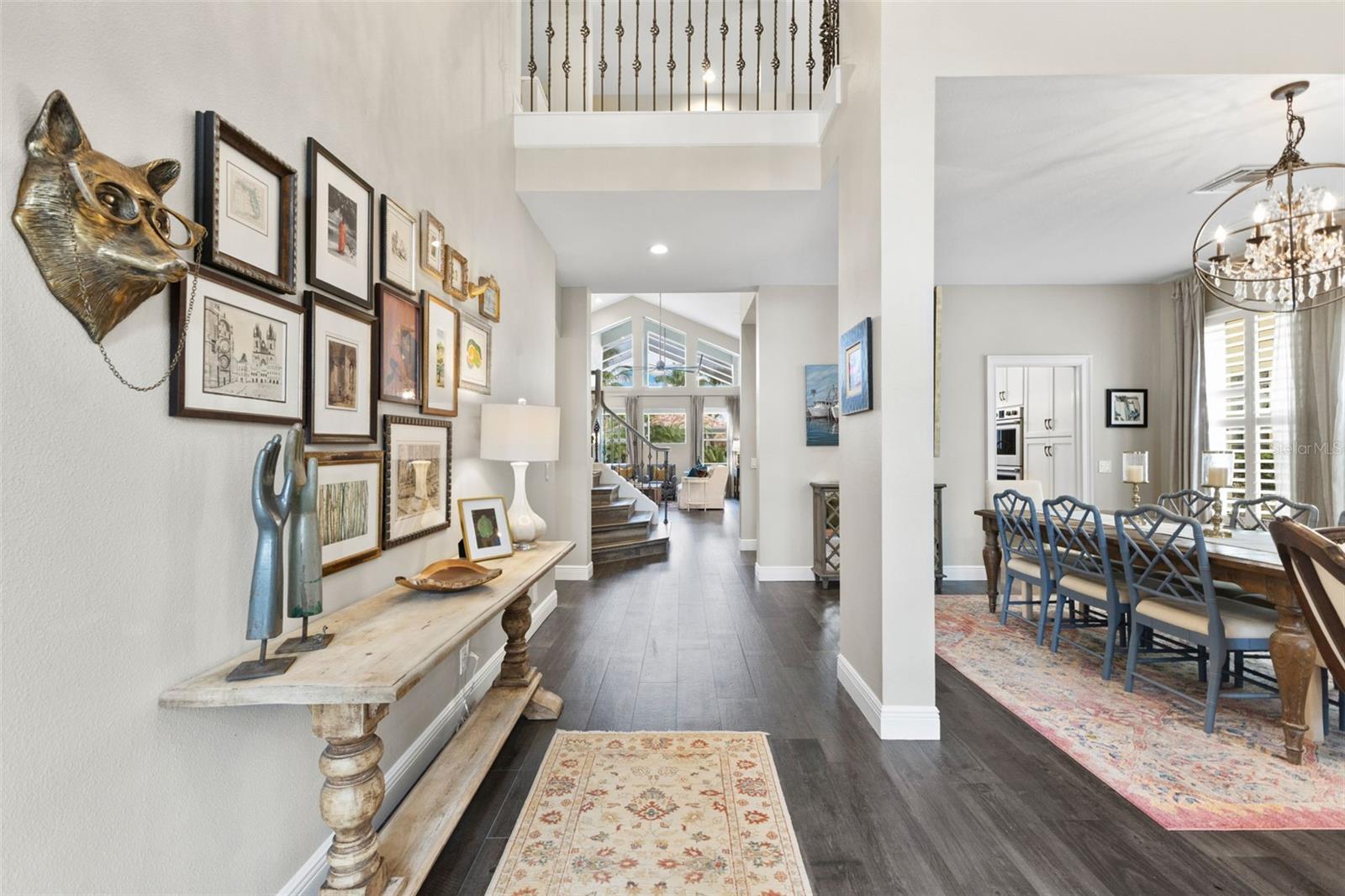 Upon entry, the grandeur of 20-foot ceilings and thoughtfully opened sight lines immediately captivates, creating a luminous and expansive atmosphere. The heart of the home is a stunning chef’s kitchen, appointed with sleek quartz countertops, custom cabinetry, and a suite of top-tier appliances including a built-in refrigerator and double wall oven, making it ideal for both grand-scale entertaining and intimate family gatherings.