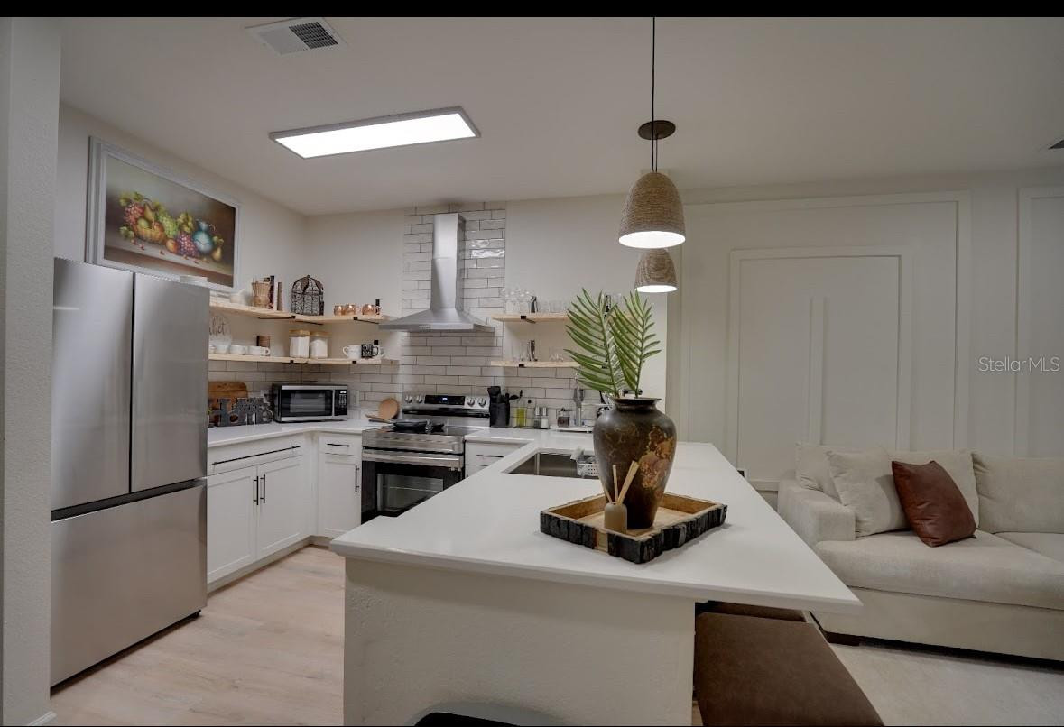 - Appliances: Convection Oven, Dishwasher, Disposal, Dryer, Electric Water Heater, Exhaust Fan, Freezer, Ice Maker, Microwave, Range, Range Hood, Refrigerator, Washer