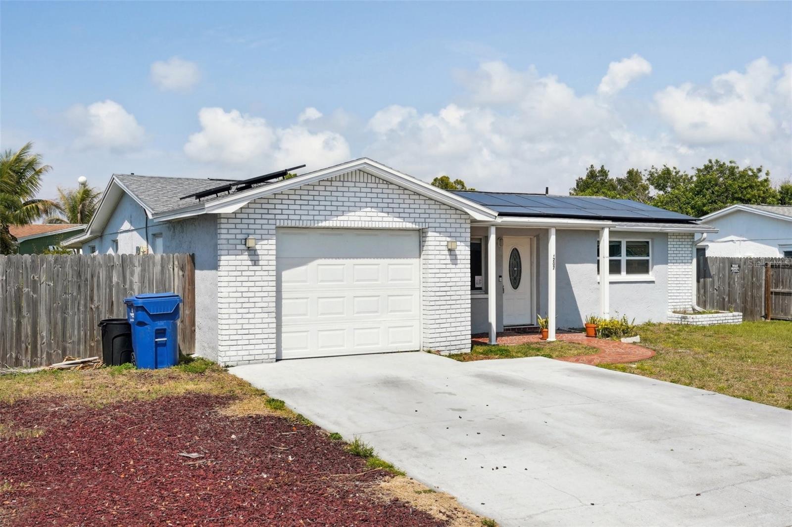 Price Adjustment on this Charming 3-Bedroom Home in Holiday Lake Estates – Close to Tarpon Springs! This 3-bedroom, 2-bathroom home with a 1-car garage sits on a desirable corner lot, just a short drive from historic Tarpon Springs and the famous Sponge Docks. Enjoy local events, waterfront dining, and easy access to Pinellas County. Featuring a newer solar panel system (2021, owned) and new roof (2023), this home offers energy efficiency and long-term savings. The spacious, fully fenced backyard includes an 8x10' vinyl shed and double gates, making it perfect for storing a trailer or boat. Additional updates include a newer AC (2020), 200-amp electrical panel (2021), and water heater (2020). Grab the sunscreen and hit the beaches, this home has an ideal location that can't be beat!