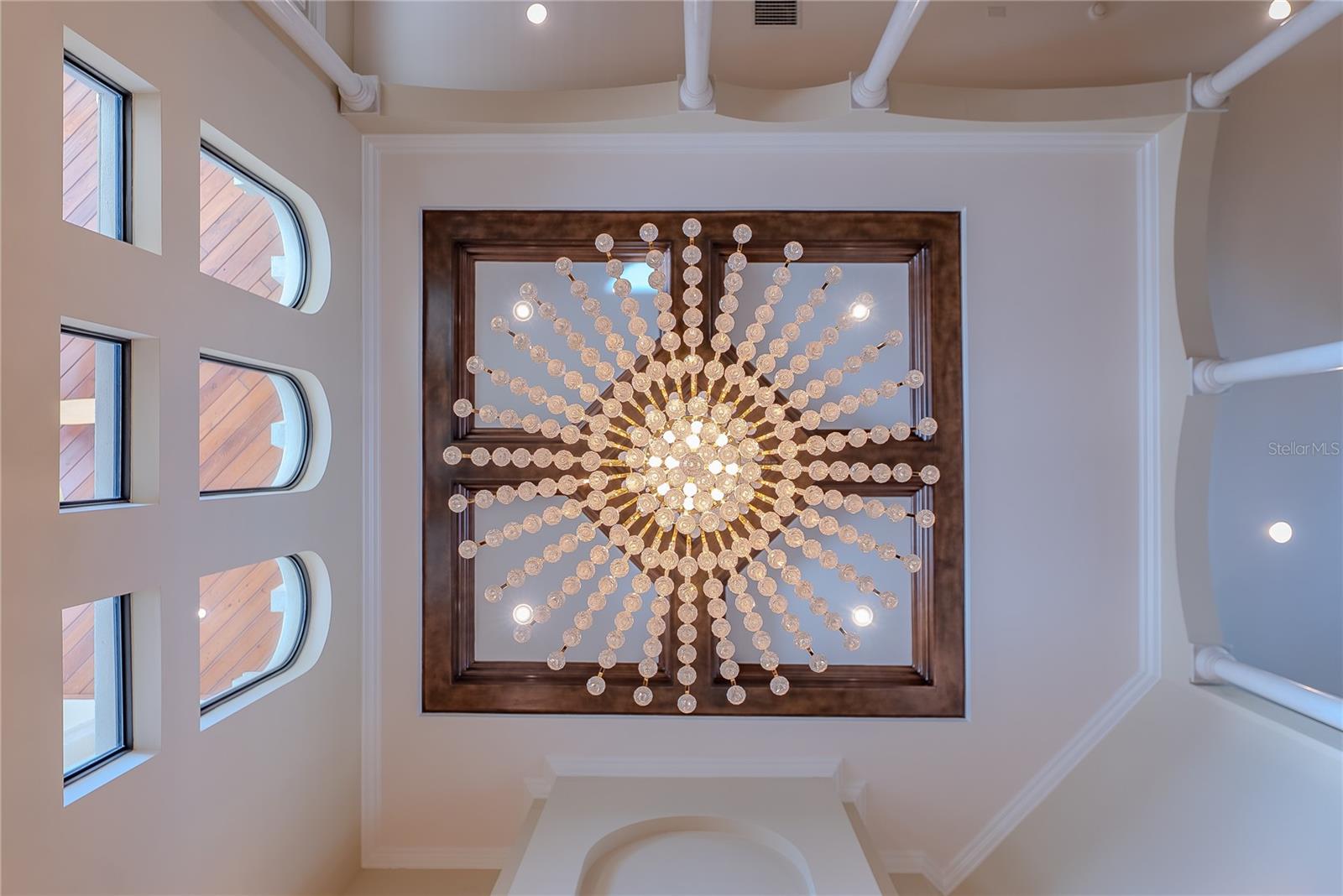- Interior Features: Built-in Features, Cathedral Ceiling(s), Ceiling Fans(s), Coffered Ceiling(s), Eat-in Kitchen, High Ceilings, In Wall Pest System, Primary Bedroom Main Floor, Smart Home, Solid Wood Cabinets, Split Bedroom, Stone Counters, Thermostat, Walk-In Closet(s), Window Treatments