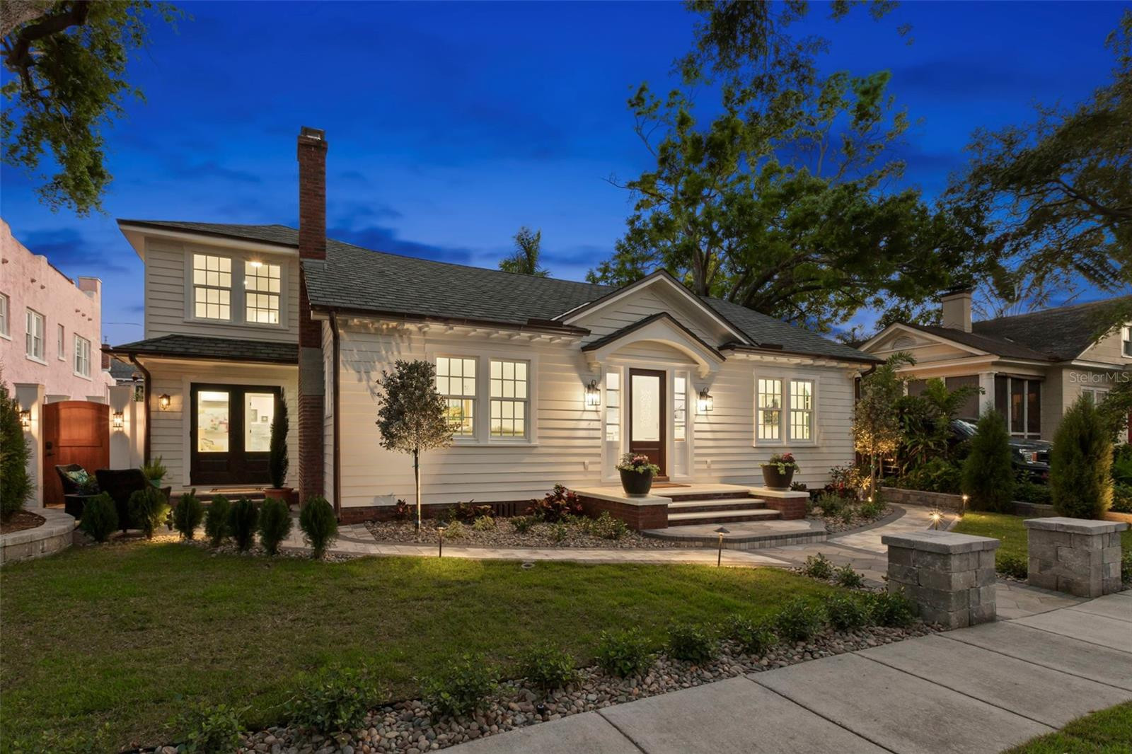 Preservation Award Winner 2025 by Preserve the Burg! Great opportunity to own a beautifully restored home where 100 year period charm meets hurricane standards! **Step into a piece of St. Petersburg's storied past with this remarkable 1924 home nestled within the prestigious Historic Old Northeast neighborhood.** Seamlessly merging historical charm with contemporary comforts, this residence offers a singular opportunity to own a slice of the city's significant heritage. This property witnessed pivotal moments in the development of St. Petersburg’s history, once serving as the dwelling of Babe Ruth in 1935 (Tampa Bay Times) and boasting a connection to George Gandy Sr., famed builder of Gandy Bridge. The restoration project by Maureen Stafford honors the original scale and charm of this Craftsman Bungalow, while artfully blending modern living with authentic period details and structural reinforcements. Surrounded by tropical and formal gardens on well laid out grounds, the home offers a serene outdoor oasis with a large, newly restored pool and covered loggia with an outdoor fireplace in the heart of the city. Located in Historic Old Northeast, renowned for its tree-lined brick streets, granite curbs and grand homes, and rare collection of Craftsman Bungalows, the property offers a peaceful setting while remaining conveniently close to downtown restaurants and cultural attractions. With its blend of historical significance, architectural authenticity, and modern updates, this home presents a truly exceptional opportunity. This special, restored gem offers three bedrooms with ensuite baths (one of which could function as a combination den/office/guest suite), a spacious modern kitchen, a dining room and living room with fireplace and vaulted ceilings offering a casual entertaining space. Plenty of parking on the 5 car parking pad with alley access. Should you desire a garage with an ADU above, renderings and a site plan are available to begin the process to take to an architect for construction drawings. Schedule a private showing today to experience this restored home, just five blocks from the waterfront for recreation and an easy walk or bike ride to vibrant downtown St. Pete, where restaurants, shopping, and the arts await!
