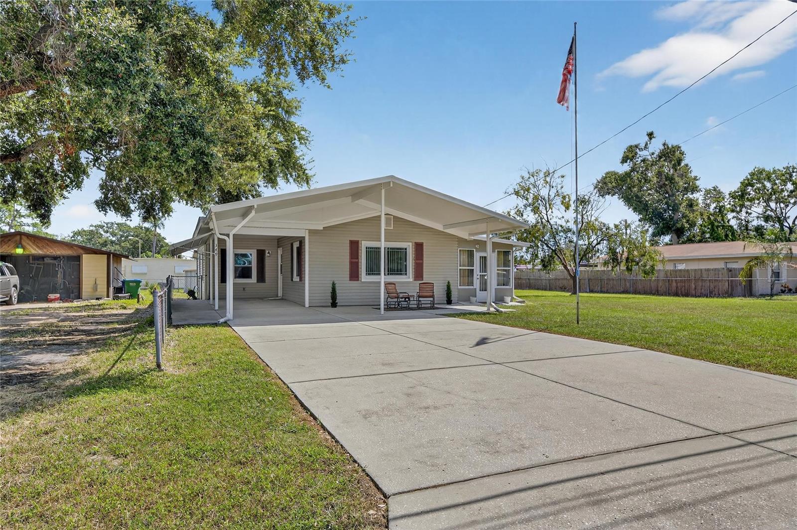 Enjoy a spacious screened-in porch and a large Florida room that could easily be converted into another living area, office, or guest suite—plus a storage shed for tools or hobbies. Located in Flood Zone X and unincorporated Pinellas County, you can park your boat, RV, or trailer with no HOA restrictions.