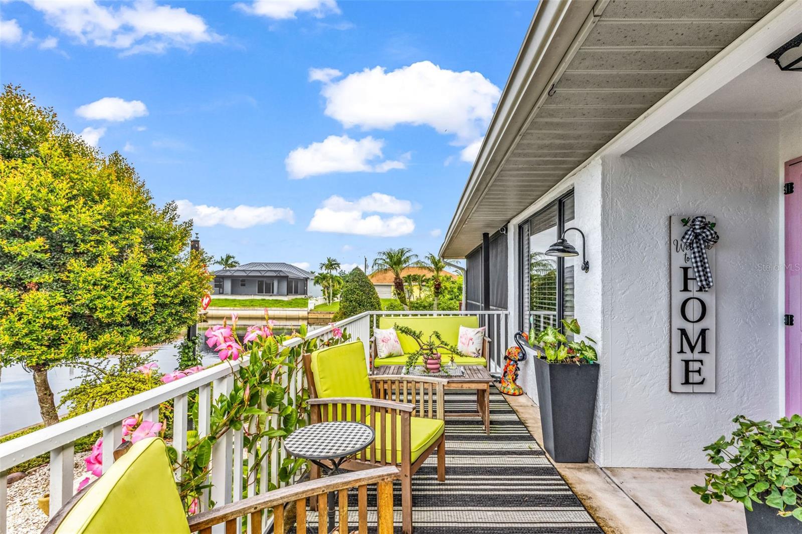 Outdoor living shines with a wraparound porch, rear patio, and multiple areas for relaxing or entertaining. The front porch provides a serene spot overlooking the canal and views of the Peace River, while a welcoming front garden adds charm to the entry. In back, a private herb garden with a French drain creates a peaceful retreat and a touch of sustainability. The property is enhanced with Bahama shutters for shade and storm protection. Here, you can enjoy the best of both worlds—the calm waters of the Peace River, ideal for kayaking, wildlife watching, and fishing for largemouth bass, catfish, snook, and tarpon, combined with direct passage through Charlotte Harbor to the Gulf of Mexico for world-class saltwater fishing, boating, and open-water adventures.