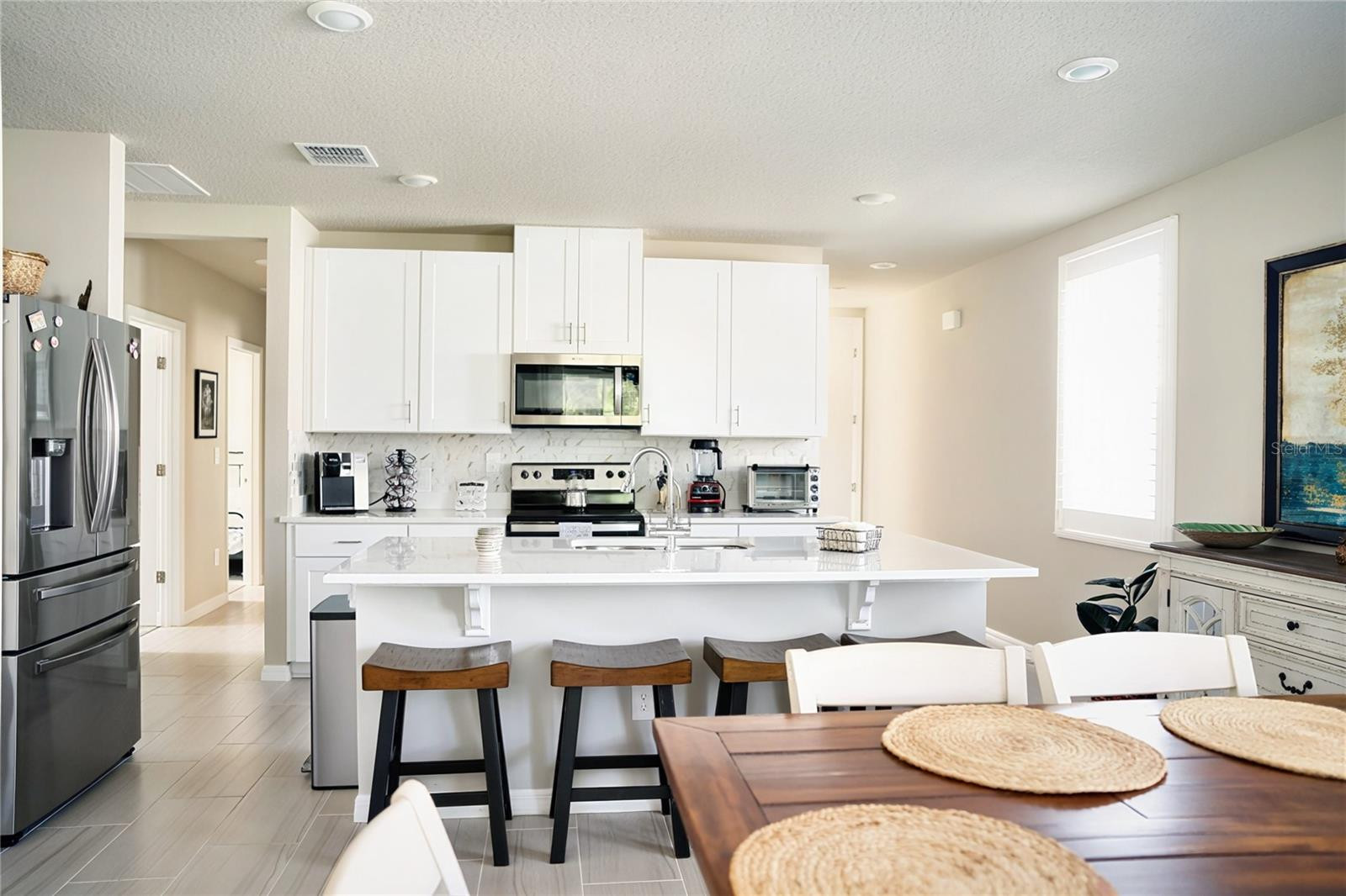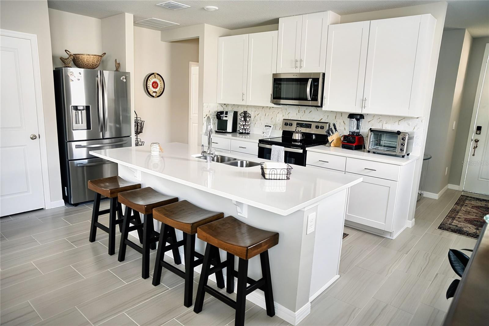 Immaculate 2024 Meritage Home in Park East with Lake View Welcome to this immaculate 2024 Meritage home in the sought-after Park East community of Plant City. This single-story, 4-bedroom, 2-bath residence offers an open-concept layout with a spacious great room, dining area, and contemporary kitchen featuring quartz countertops, designer backsplash, stainless-steel appliances, a large island, and pantry.