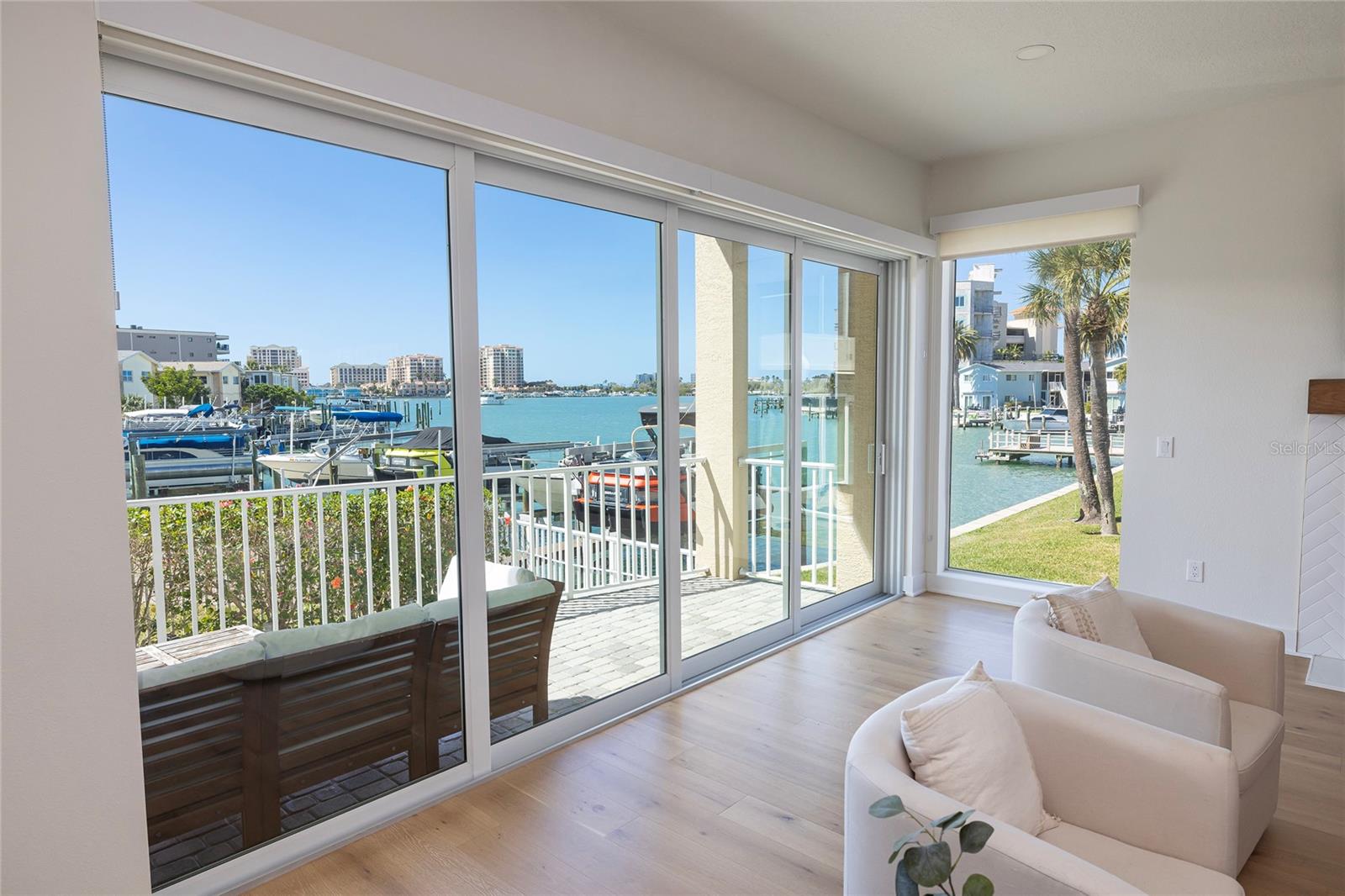 Yes, it has a DEEDED boat slip (and a 10,000lb remote-controlled boat lift)! This 3,000+ sq. ft. corner unit townhome promises the BEST views in the entire building! From 2023 to 2024, this stunning home underwent a complete renovation, with every inch thoughtfully and professionally redesigned to enhance flow, function, and style. Downstairs, the layout has been reconfigured to create a bonus room that can be used as a den/office, guest room, in-home gym, you name it! The kitchen features stainless steel KitchenAid appliances; durable Quartz countertops; an induction cooktop; custom hardwood cabinetry with soft-close hinges; ample pantry storage; and a large island featuring a massive farmhouse sink! The kitchen opens to the dining area and the living room, which all share a beautiful view of the intracoastal waterway! The new hurricane-grade PGT impact sliders open all the way, pocketing into the reinforced back wall to provide true indoor-outdoor living. The beautifully customized staircase leads to 3 well-appointed bedrooms, each with an en-suite bathroom. The primary bathroom was transformed into a spa-like oasis, featuring a large walk-in shower complete with Kohler Purist dual showerheads and a rain shower, and a built-in niche and bench; a 65in Kohler Ceric freestanding tub; limestone floors; floor-to-ceiling ceramic tiles; Kohler Purist faucets; a linen closet; a separate water closet; and custom cabinetry. The primary bedroom is light and bright, with two custom-designed walk-in closets, intracoastal water views, new hurricane-grade sliders, and a balcony that provides front-row seats to brilliant sunsets 365 days a year. This home features engineered hardwood throughout (excluding the bathrooms), updated light fixtures and recessed lighting, two redesigned fireplaces with Quartz hearths, and 10+ foot ceilings. Did I mention the location?? This home, located in the heart of Island Estates, is only a 2-minute walk to Publix, shopping, and restaurants! It’s only a 5-minute drive to Clearwater Beach, a 30-minute drive to Tampa Int'l Airport, and SO much in between! Elevated, featuring a 2-car garage on the lower-level. With its waterfront views from all the main living spaces, the ability to dock your boat, jet-ski, and kayaks in your backyard, and walkable/bikeable access to the intracoastal, the beach, shopping, and restaurants, this home has ALL you need to enjoy Florida living to its fullest potential! You won’t find another home like this one -- make your appointment today!