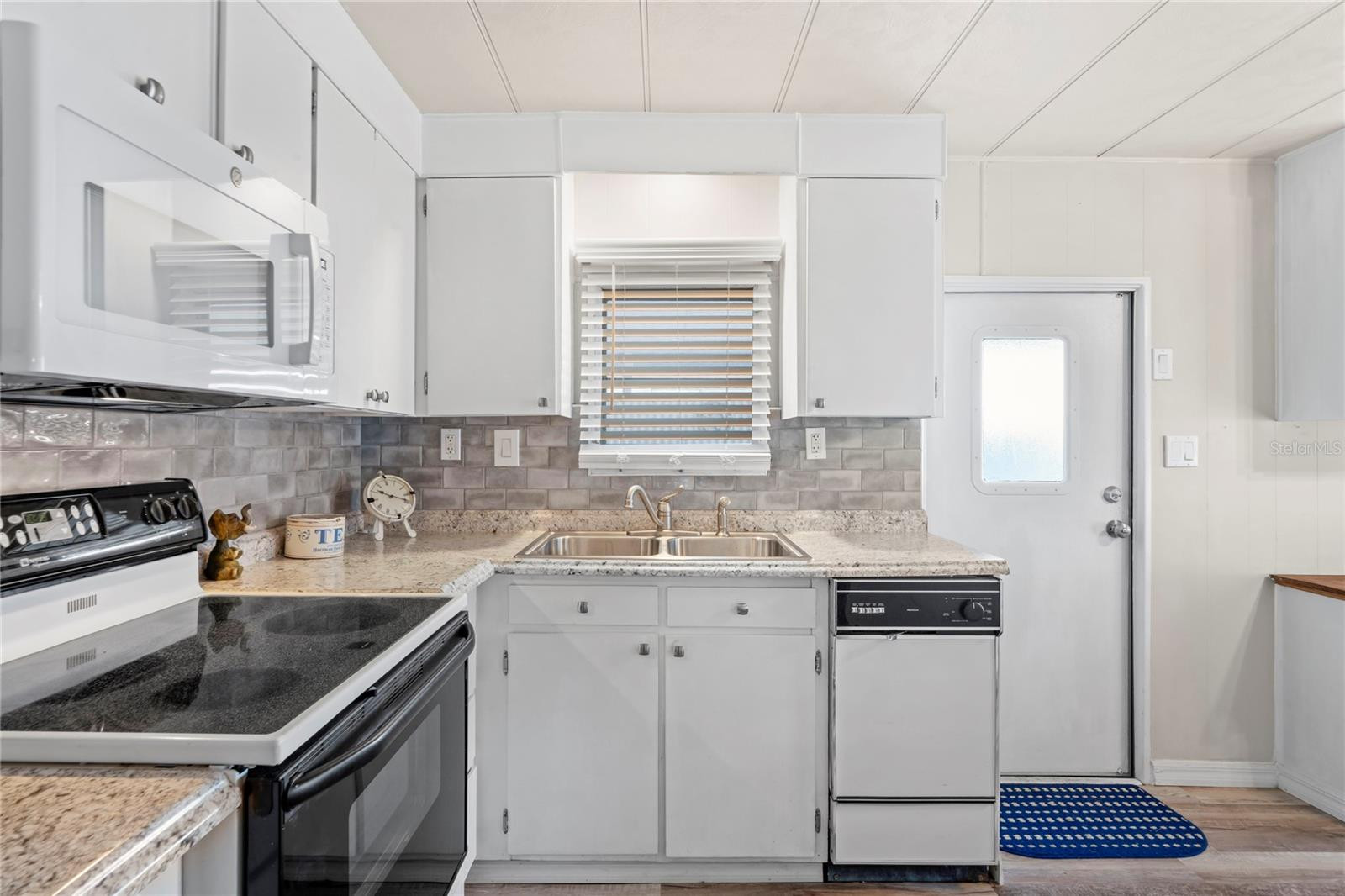 This lovingly maintained property features a bright and inviting open layout with modern vinyl plank flooring throughout, a cozy electric fireplace in the living room, and a sunny enclosed Florida room with its own wall A/C, offering approximately 170 sq. ft. of additional finished space for relaxing, reading, or casual evenings. (The enclosed Florida room is not included in the heated square footage.)The kitchen, with its crisp white cabinetry, solid surface countertop, and classic tile backsplash, is designed for your convenience. The cheerful dining nook, filled with natural light, is the perfect spot for your morning coffee. Just off the kitchen, a spacious utility room/workshop includes a full-size laundry and extra storage space.