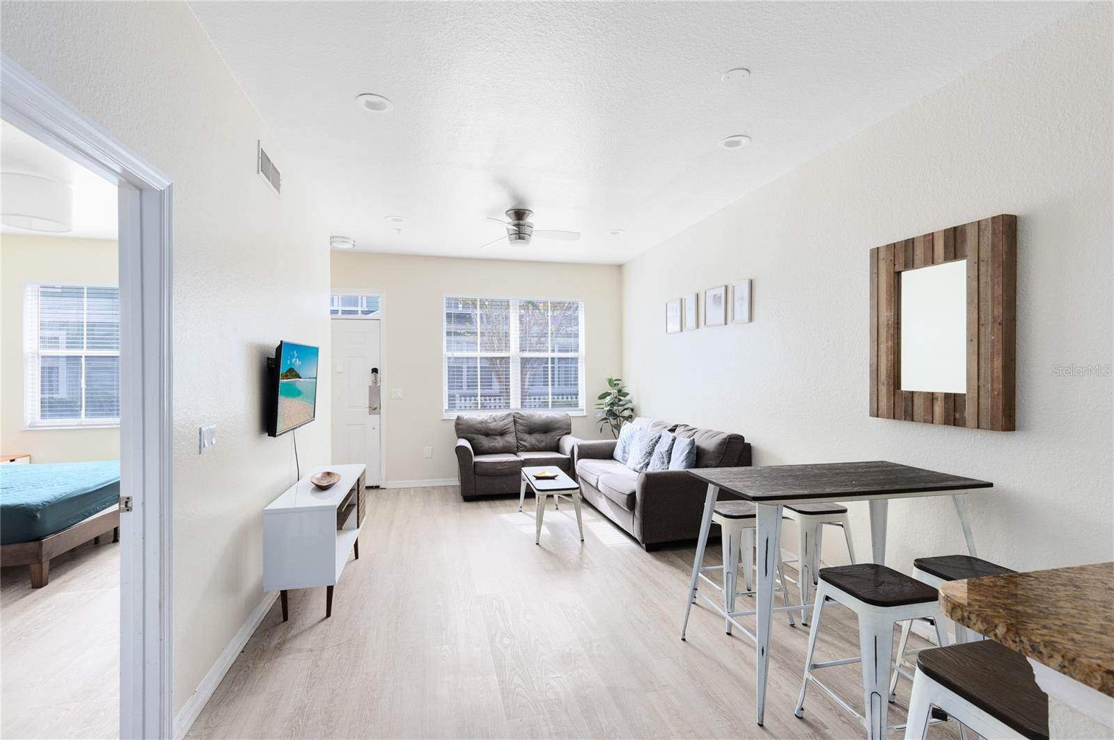 Welcome to this well-maintained 3-bed, 2-bath condominium located in the desirable, gated resort community of Venetian Bay Villages in the heart of Kissimmee. Offering full flexibility for primary living, a vacation retreat, or income-generating short- or long-term rentals, this move-in-ready home features an open floor plan, a convenient first-floor primary suite with a walk-in closet, two additional bedrooms upstairs, laminate flooring throughout the main areas, carpet in the secondary bedrooms, solid wood cabinets, stone counters, and a fully equipped kitchen. Enjoy peaceful courtyard surroundings and a low-maintenance lifestyle with exterior upkeep included. The community offers 24-hour security and outstanding amenities, including a heated pool and jacuzzi, fitness center, clubhouse, game room, tennis, basketball, volleyball, playgrounds, BBQ areas, walking paths, car wash station, and scenic ponds with sunset views. Perfectly positioned minutes from Disney, Universal, SeaWorld, The Loop, Premium Outlets, shopping, dining, medical facilities, major highways, and top schools, this home delivers both lifestyle and investment appeal. Schedule your private tour today.