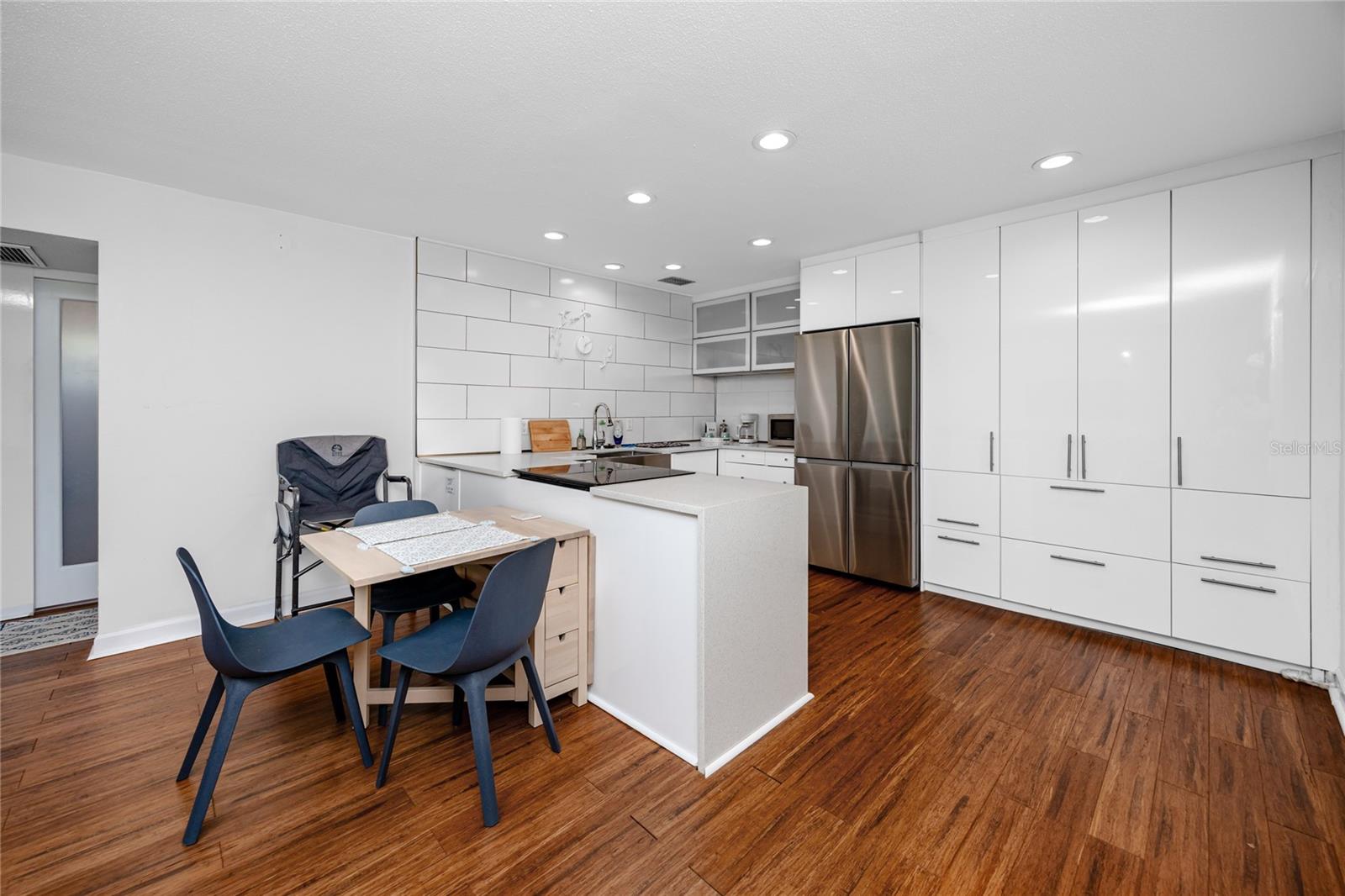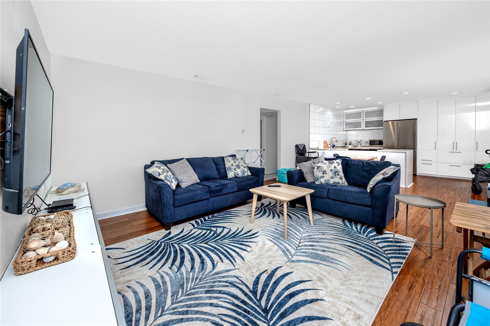 Discover effortless living in this fully renovated, low-maintenance 2-bedroom, 1-bath ground-floor condo in the well-maintained French Quarter community of St. Petersburg. Situated in a quiet rear corner, this spacious unit offers the largest open floor plan in the community, designed for comfort and modern functionality. Bamboo plank flooring flows throughout, complementing an interior updated with hurricane-resistant double-pane windows, HVAC (replaced this summer in August 2025!), and water heater—all under five years old.