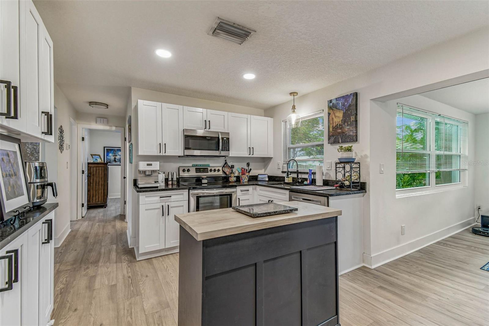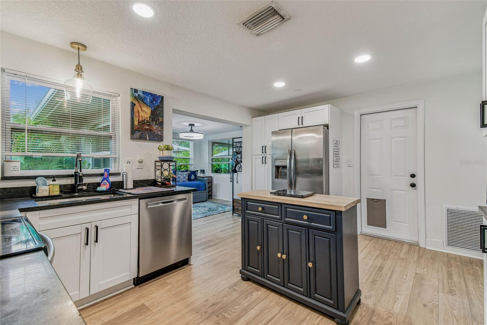 Absolutely move-in ready! Everything is new or less than three years old. Roof 2025, engineered hardwood floors 2025, front door 2025, windows in family room 2025, AC, water heater, extra insulation, appliances, kitchen and bath 2022. There's an outdoor shower and a small dipping pool for relaxing and cooling off in your private fenced-in backyard. There's also a screened-in back porch off the Florida room, currently being used as an office. This room could be used as a dining room, family room or an extra bedroom for guests. This home is bright and sunny with all updated windows. Garage is oversized. Landscaping is mature and on an irrigation system. This is the perfect starter home with zero projects. Close to shopping, Largo Rec Center, Largo Park and Library, and only 15 minutes to Sand Key beach.