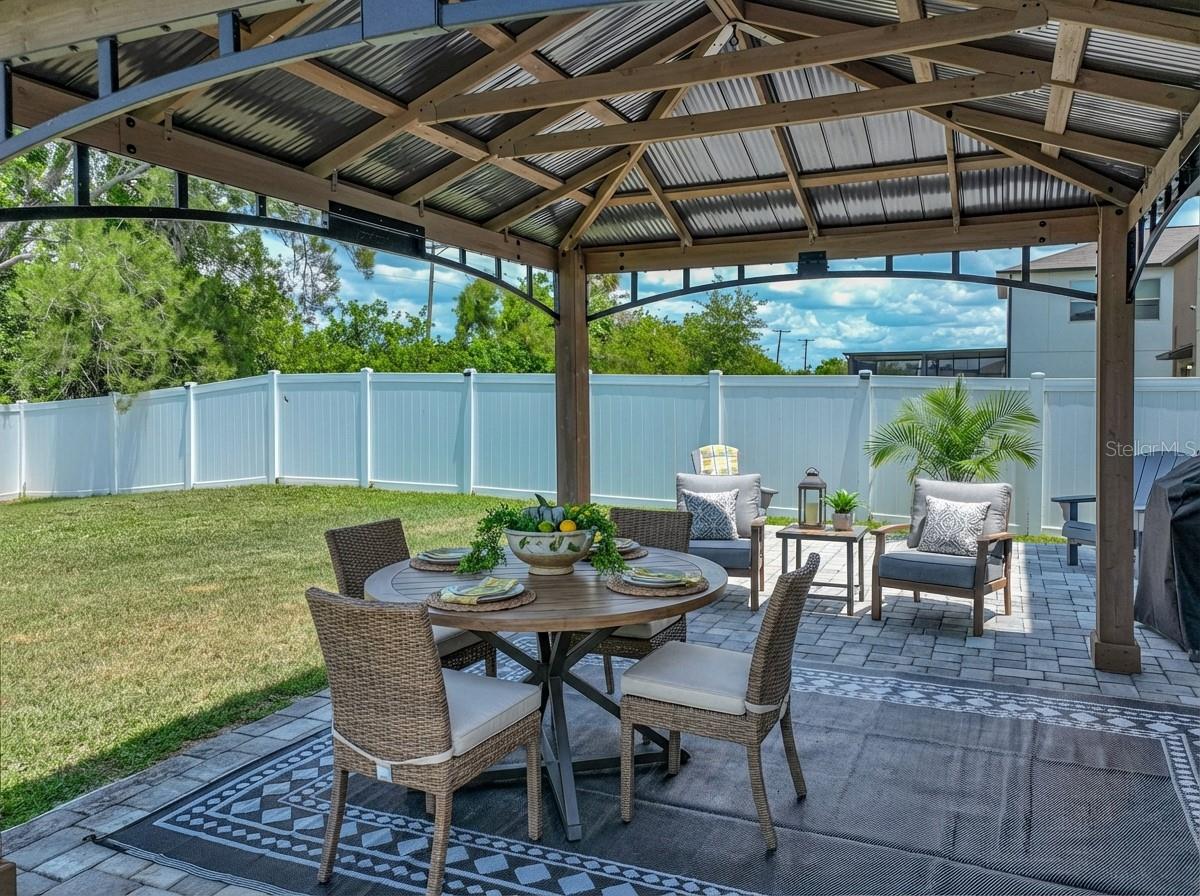 The backyard has a new stone patio with a pergola, new vinyl fencing, and yes — it’s big enough for a future pool, so go ahead and start the Pinterest board. You also get overhead garage storage, an irrigation system, and hurricane shutters so you’re set for storm season.