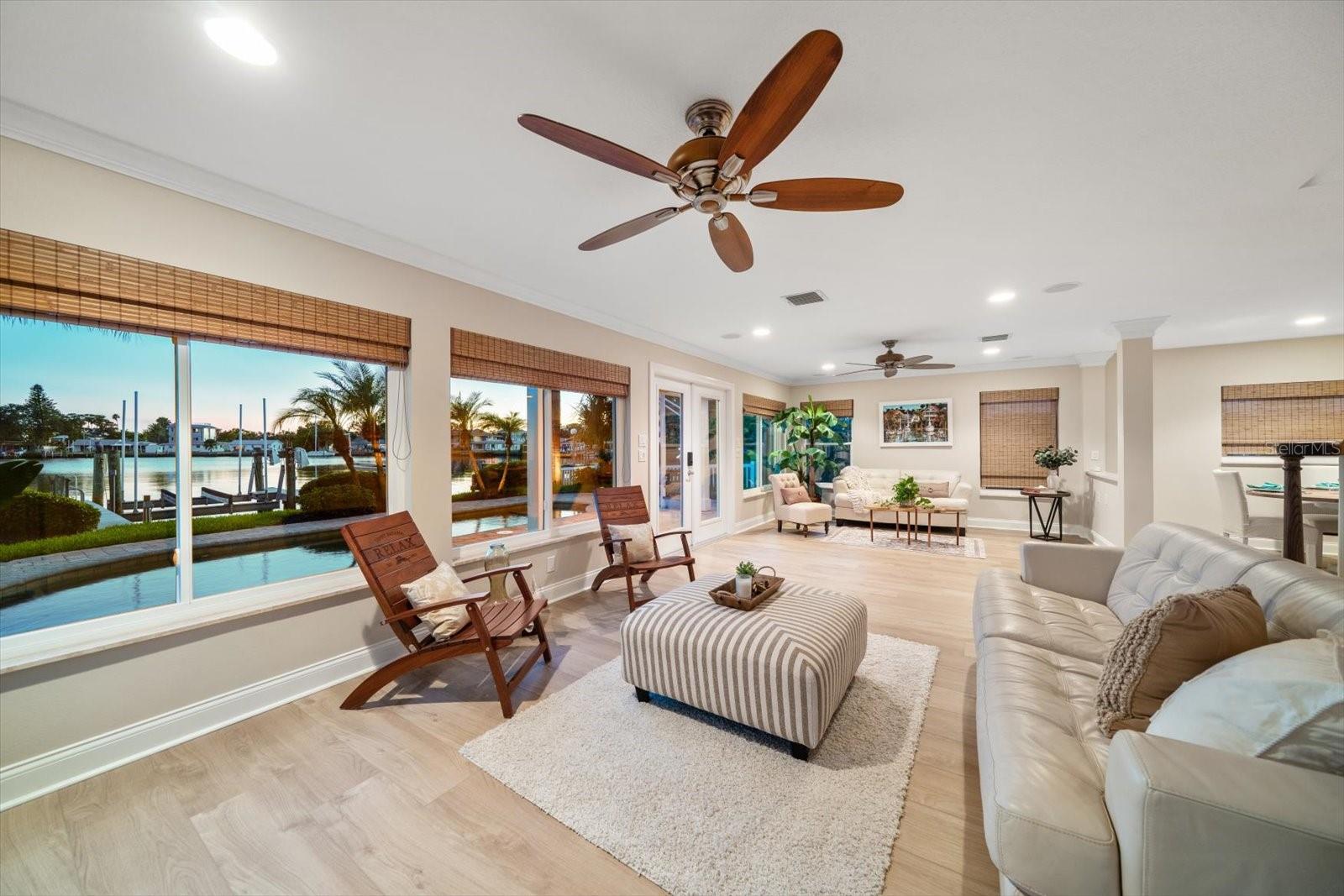 Beautifully and extensively updated waterfront residence confirms why we love living by the coast! Situated on a wide-open cove offering breathtaking water views with attention to all details, this stunning home has an exceptional floor plan-functional, inviting and timeless. Flexible in use as a permanent, second home, or lucrative investment property, the residence is a rare find in today’s marketplace. Offering stunning views of the protected harbor from multiple areas, the interior has been completely renovated with exquisite finishes. The kitchen is the highlight of this exquisite residence boasting attractive quartz counters, dimensional tile backsplash, new top of the line appliances, custom cabinetry, and wine bar; perfect for friends and family to gather around the large peninsula bar. Appreciate two living levels where the second level is dedicated to the expansive private primary suite, with large walk-in closet enhanced by built ins, bathroom with double vanities, walk in shower, soaking tub and separate private office or nursery. Spacious great room and separate dining area on the main level with 2 additional bedrooms, full bath and half bath, reconfirm that this is a floor plan to be enjoyed for entertaining, relaxing or living beautifully by the water. Outstanding pool and deck, perfectly situated in the tropical yard, allows easy access to a private dock composed of easy-care composite decking, and a separate catwalk borders the 16,000 pound capacity boat lift-provides for all of your boating and fishing pleasure. Relax as you watch the dolphins play, or sunbath in the warmth of the sun with its southern exposure-perfect for all year weather enjoyment. New dual HVAC, roof, LVP flooring, interior doors, whole house generator, tankless hot water heater, extensive storage in attic area, and much more ensuring modern comfort and peace of mind. Don’t miss the opportunity to live in this fabulous waterfront home in a very desirable seaside community just 2 blocks to the sugar white sands of Indian Rocks Beach. Perfect for primary residence, second home or Investment property.