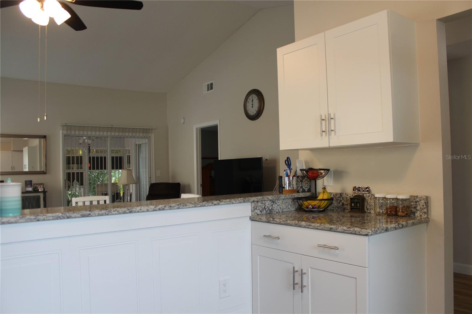Updated 2-bedroom 2 bath one car garage home with an enclosed/screened lanai. The kitchen has been updated nicely with white shaker style cabinets and granite countertops. Newer (3 years old) GE stainless steel appliances. There is a nice size master bedroom and walk in closet. Both bathrooms have also been updated as well. The home has newer (3 years old) luxury vinyl flooring and 4.25-inch base boards throughout the home. Great location with shopping, eateries, banks, & much more all within a one-mile radius.!! No CDD's!!! The low HOA includes cable TV and internet, garbage, lawn service and exterior painting and roof replacement. AC is 2013 (serviced yearly and never had a problem), roof was replaced 2016, water heater was replaced 2024, and all the windows were replaced in 2023. Move in ready. Great for primary or 2nd home. Can not be leased until 2 years of ownership. There is a community pool/clubhouse. Call today for your PRIVATE showing! Room sizes are approximate.