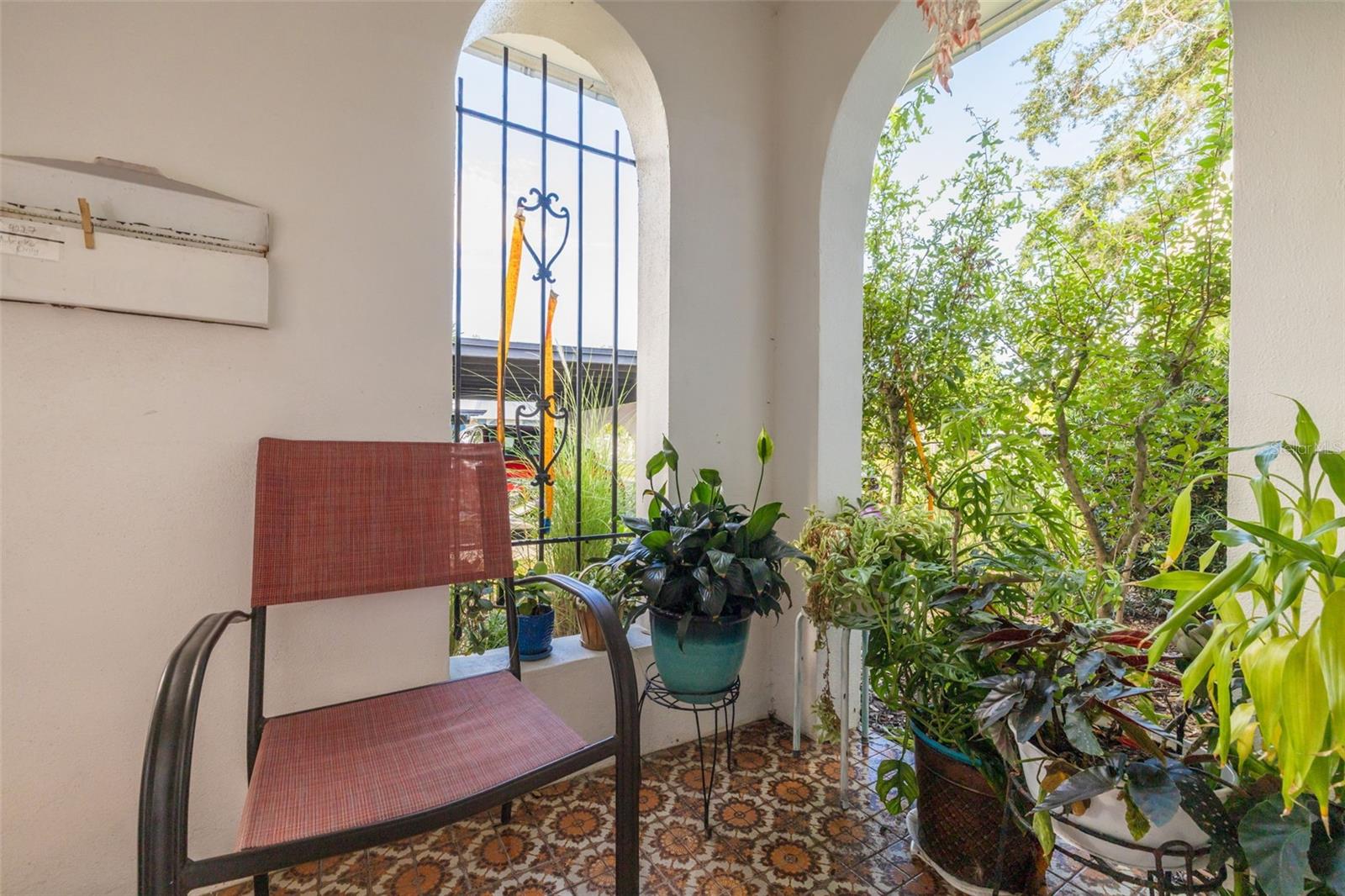 A bright sun parlor off the back adds another layer of charm, with elegant ceramic tile and beautiful natural light that makes it a perfect spot for morning coffee or quiet reflection. Outside, your private back patio is surrounded by blooming plants—your own little sanctuary for enjoying those gentle Gulf breezes year-round.