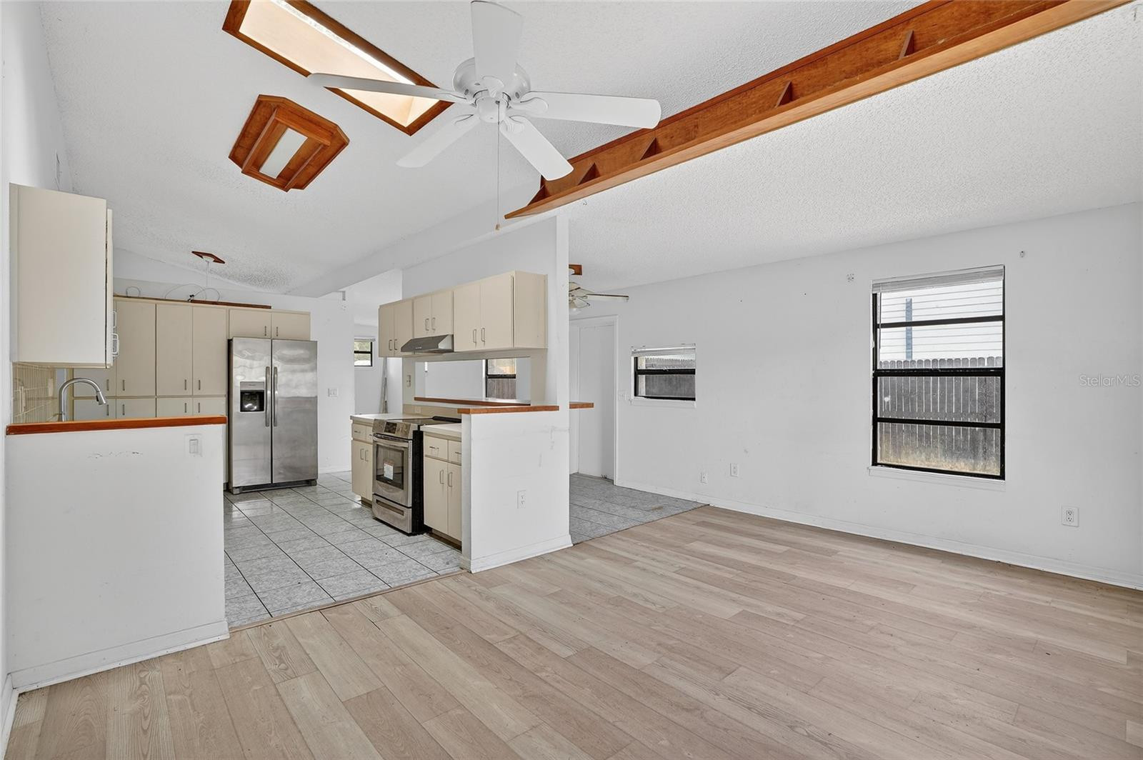 Welcome to this 3 bedroom, 2 bath home in St. Petersburg, located in an X flood zone and positioned for easy commuting throughout the city and beyond. The main living area features soaring vaulted ceilings that immediately create a sense of space and openness This carries into the kitchen as well. Natural light fills the home, giving it a bright, welcoming feel from the moment you step inside.