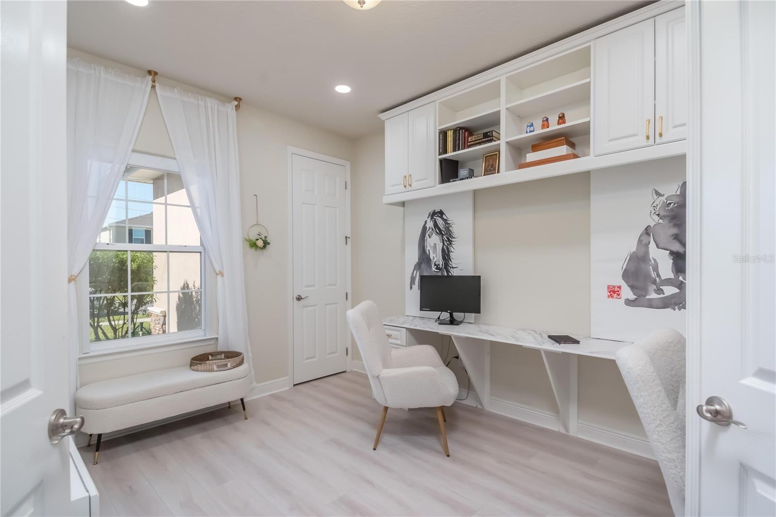 The primary suite includes two walk-in closets and an ensuite bath with dual sinks, soaking tub, and separate shower. Additional bedrooms provide flexible space for guest rooms, office, or hobby use.